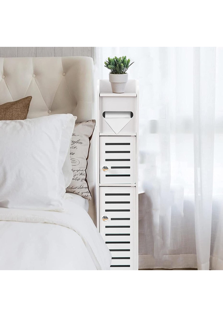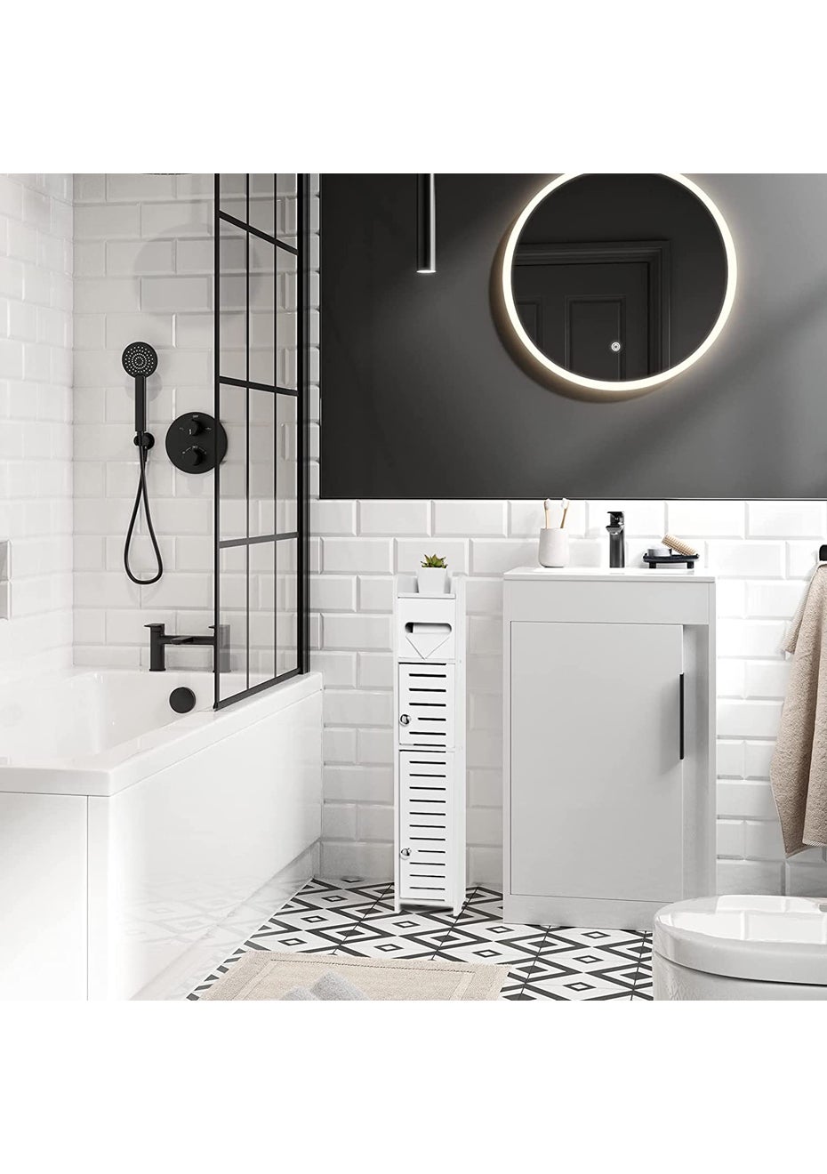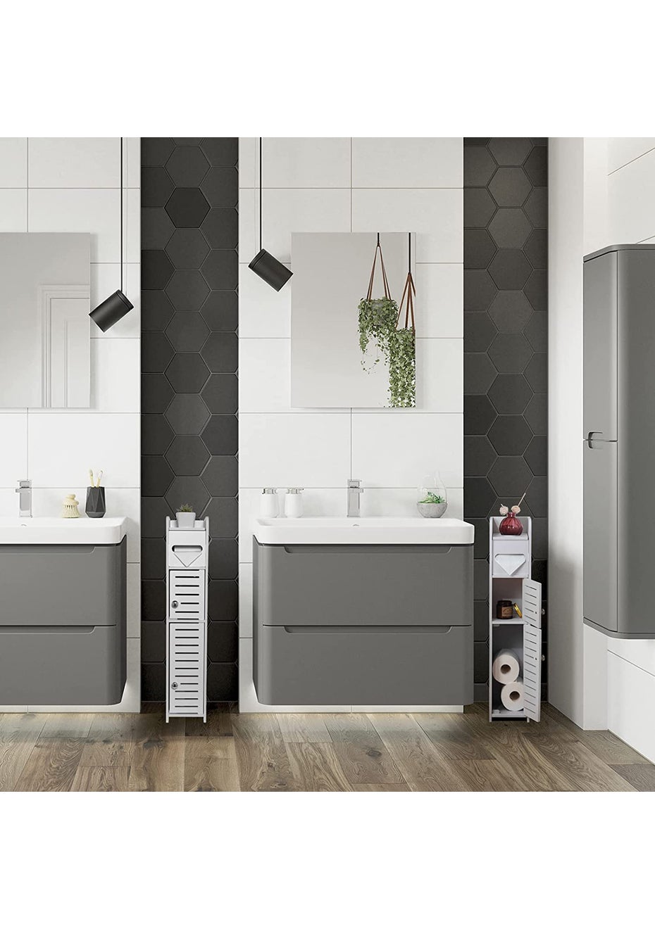 Bathroom Storage Cabinet Toilet Storage Cabinet for Small Spaces<br><br>Material: Polyvinyl Chloride<br>Product dimensions (LWH): 15.5×15.5 x 80 cm<br>Package dimensions (LWH): 44x17x9cm<br>Weight: 2Kg<br>About This Item:<br>• 【Optimized Toilet Paper Dispenser】This bathroom storage cabinet with two doors and shelves offers ample storage space in your compact room. It can store 4-5 rolls of regular-sized toilet paper at a time, making it an efficient bathroom organizer and toilet paper dispenser. <br>• 【Slim Design for Small Spaces】Our small bathroom storage fits neatly in any corner of your house. Its compact dimensions of 15.5W x 15.5D x 80H CM are perfect for exploiting the narrow spaces often found in small bathrooms. This slim, space-saving storage cabinet can serve as a bathroom storage cabinet and also as a bedroom and living room organizer.<br>• 【USEPA Recognized Cabinet】This small bathroom cabinet is made from eco-friendly, non-spray painted, waterproof, and flame-retardant PVC. It's lightweight and easy to clean. It has passed rigorous USEPA testing, ensuring safety and convenience for family use.<br>• 【Multifunctional Bathroom Storage】The top shelf of this storage cabinet can hold a plant stand or a cell phone. The open shelf design facilitates easy replacement of toilet paper, while the bottom shelf can store bathroom accessories. Its over-the-toilet storage feature makes it extremely handy in your bathroom.<br>Package Includes:<br>• 1 * Small Bathroom Storage Cabinet (Flat Packed)<br>