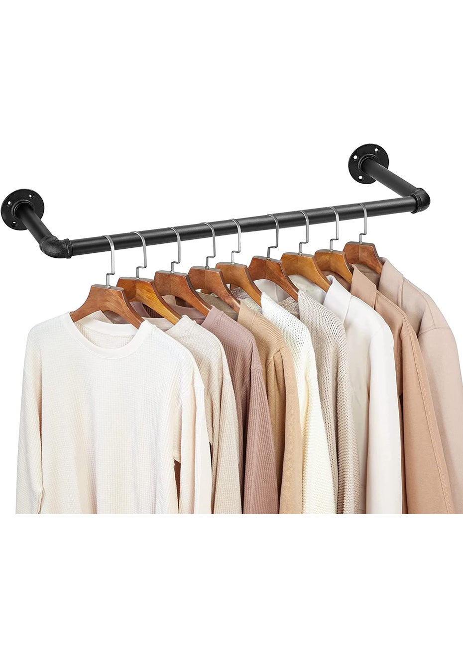 Industrial Pipe Clothes Rack - 100CM<br>Material: Iron<br>Product dimensions (LWH): 111cm × 29cm<br>Package dimensions (LWH):120X12 X12CM<br>Weight: 1.4KG<br>Features<br>【Size & Load Capacity】: The size of this closet bar is 111cmX29cm). Installed on a solid wall, this rod is extremely sturdy and can hold over 50kg. (Note: It is NOT recommended to install on cavity walls)<br>【Sturdy & Durable】: Made of strong malleable iron with a black matte surface finish, this rack is extremely durable and built to last. It can hold a good amount of clothes, keeping your garments and accessories always organized and tidy. We have additionally processed the hanger with an anti-rust layer for long-term enjoyment.<br>【Easy to Install】: Our rod for clothes hanging comes with detailed illustrated instructions. Simply connect the accessories and then fix them with screws and anchors to complete the installation.<br>【Widely Used】: This pipe rack is suitable for a wide range of wall styles. It includes hardware to mount on concrete, tile walls, or other types of walls. It can be used in a hallway, entryway, bedroom, closet, laundry room, or balcony.<br>【Industrial and Retro Design】: Crafted from metal pipes, this clothing rack adds an industrial vintage style to your home or retail store. With its cool industrial look, it easily matches with different styles of rooms.<br>Package Includes<br>1 x Industrial Pipe Clothes Rack (Black Matte Surface)<br>1 x Screws Set<br>