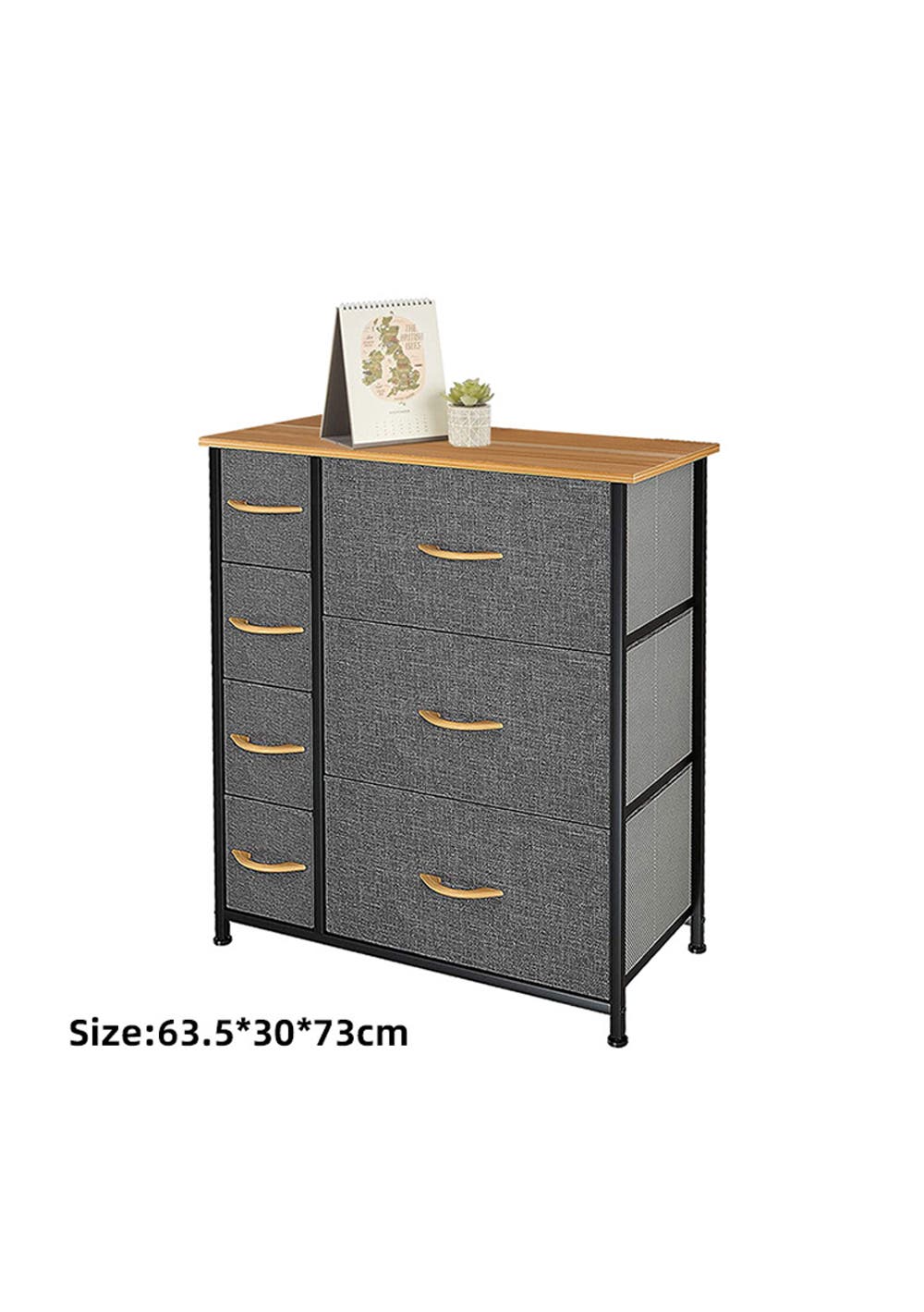 Made from reliable metal frame and durable MDF wooden top; 7 removable and foldable drawers; Easy pull wooden handles help conveniently open and close the drawers