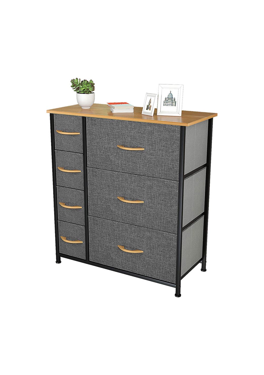 Premium cool grey fabric drawers, with sturdy black metal frame and waterproof wooden tabletop; Enjoy modern scent and stylish aesthetics that easily complements various living spaces: living rooms, bedrooms, hallways, entryways, closets and nurseries, etc.