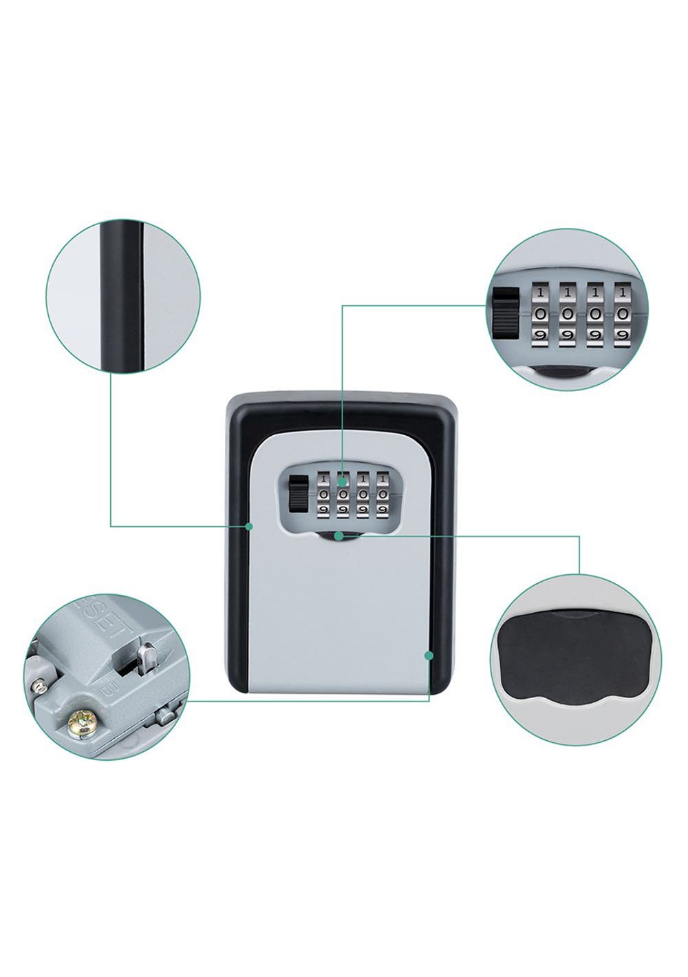  This 4-digit combination lock box allows you to set your own combo code with 10000 unique choices which you know it is secure.  High strength Aluminum alloy body construction mounted inside with 4 mounting screws, protects the key safe box from hammering, sawing and prying.  It is easy to install and set the 4-digit combination. Instructions are included.