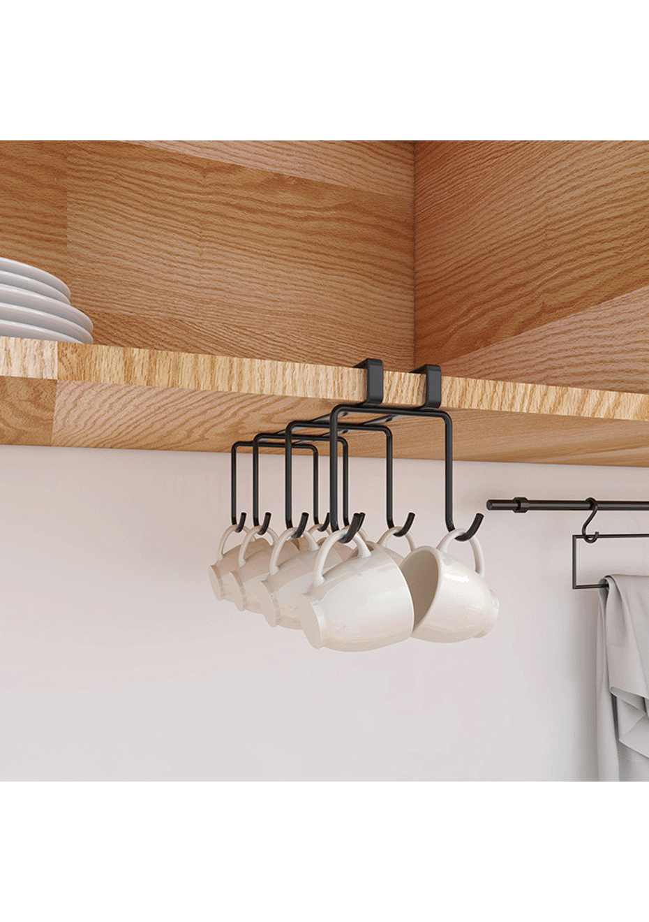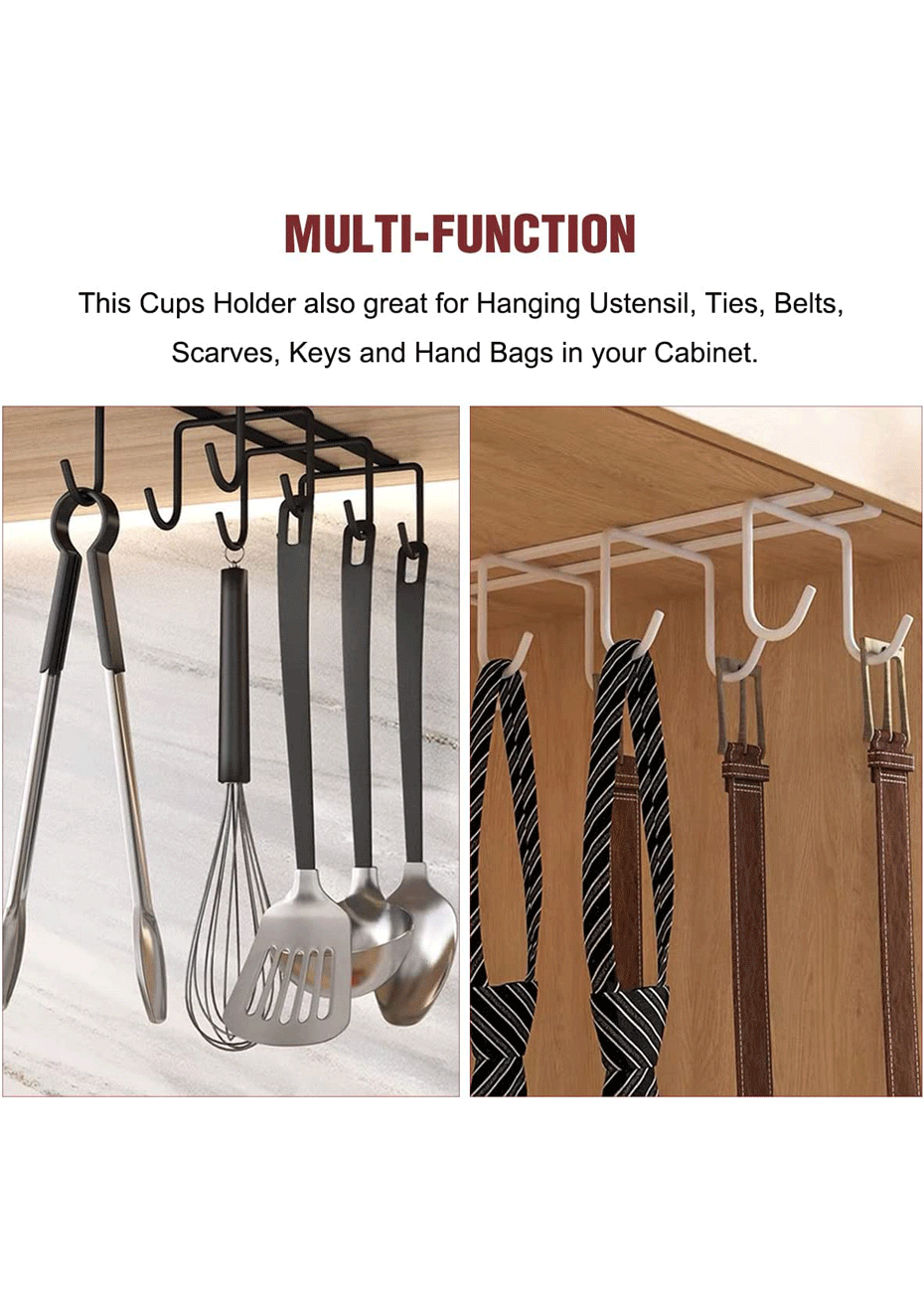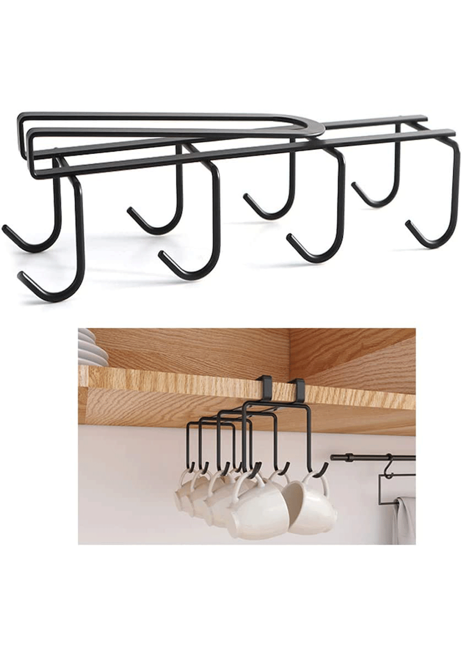 2Pack Under Cabinet 8 Hooks Cup Organizer Rack-Black