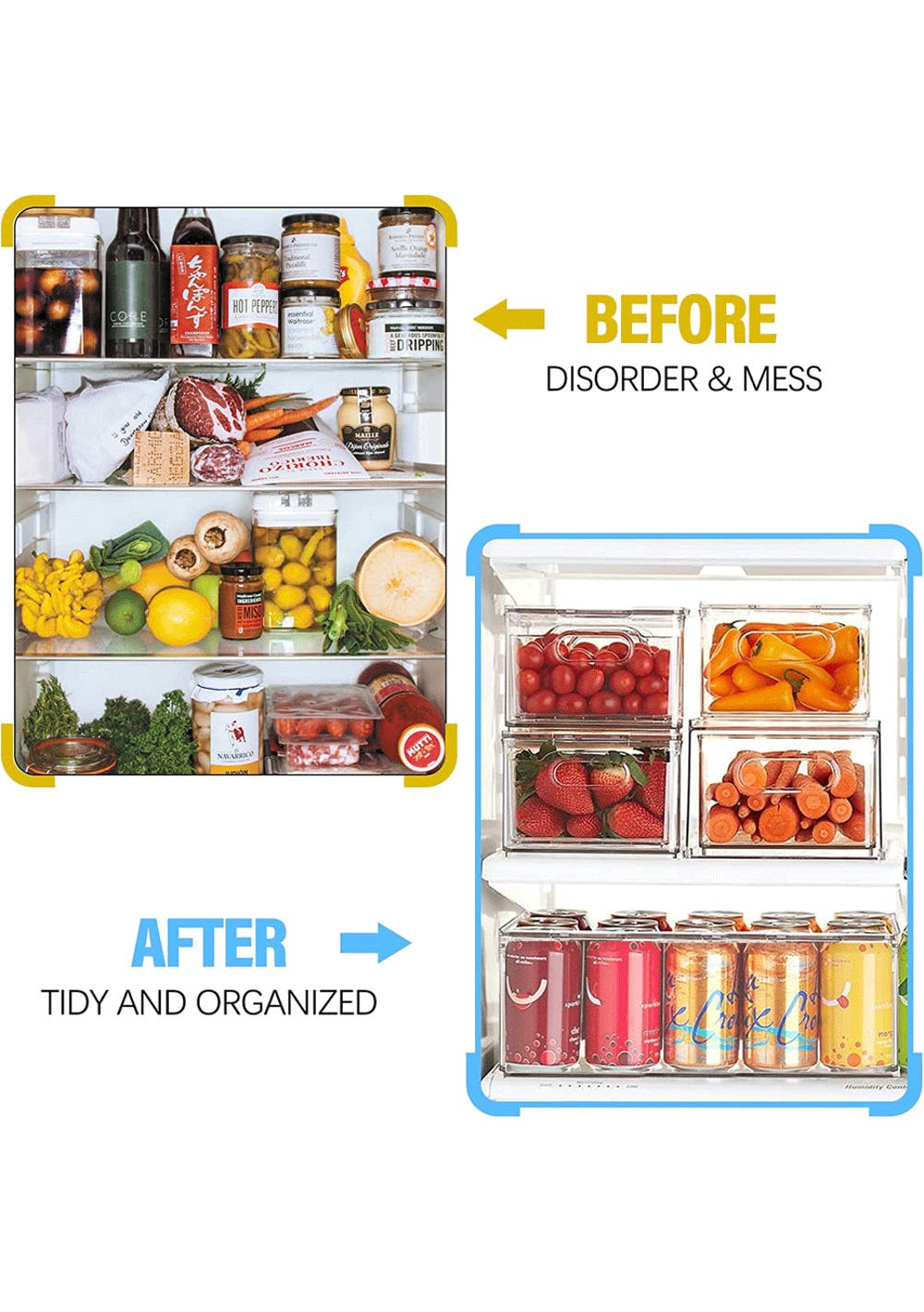 UPGRADE YOUR FRIDGE ORGANIZER SPACE: Messy display will waste too much space. Use the refrigerator storage bins to reasonably classify your food, save refrigerator space and organize more food. The clear plastic makes it easy to see where the food is placed and saving you the time to find food.