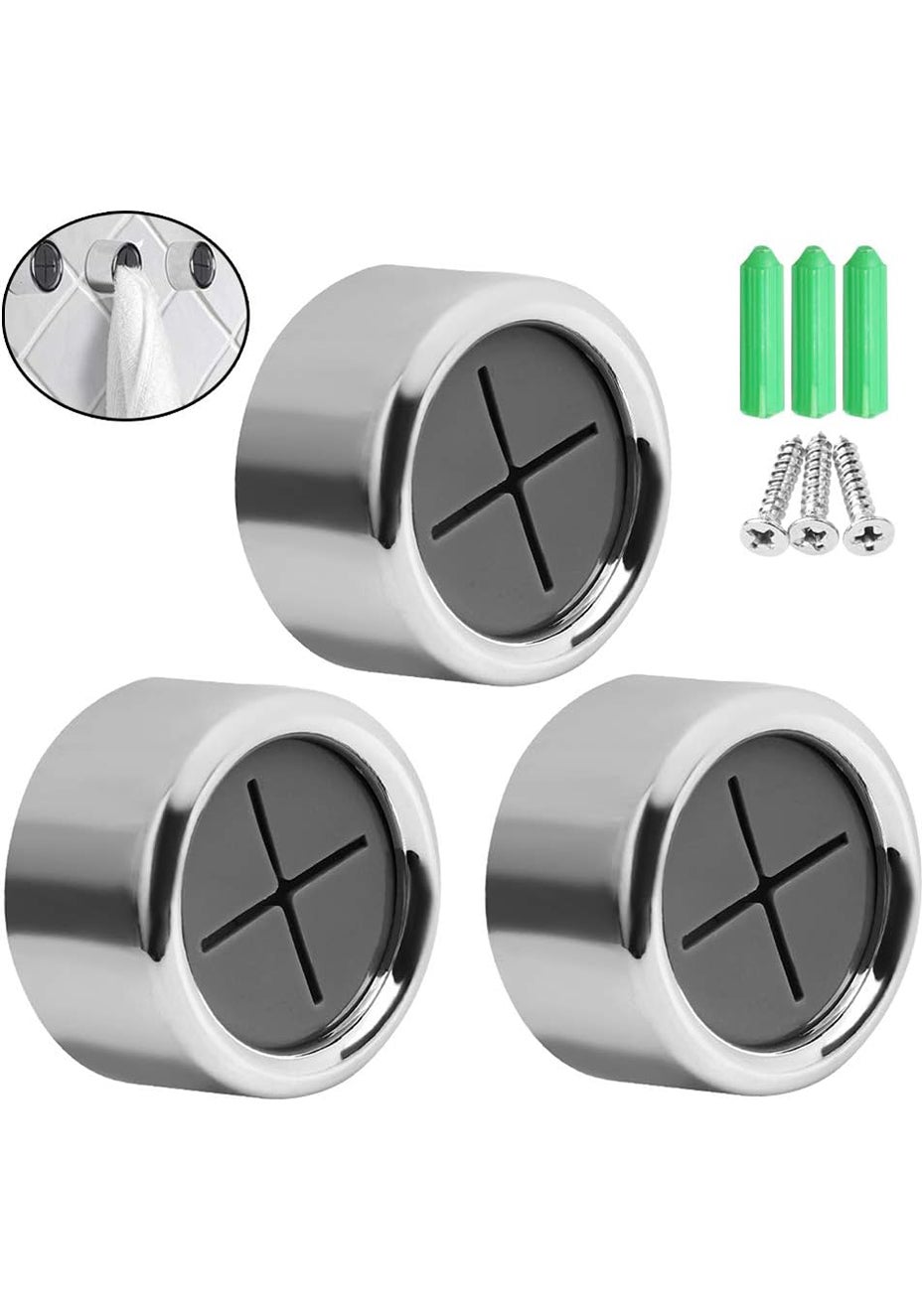 3 Pieces Kitchen Towel Hooks<br>Materials: ABS<br>Product dimensions (LWH): 4.2X 2.3CM <br>Package dimensions (LWH): 5X 5 X 6 CM<br>Weight: 60G <br>Features:<br>• Eco-Friendly Material: Made of non-toxic ABS material, our towel hooks are not just strong but also safe for home use and do not contribute to environmental damage.<br>• Effortless Installation: Say goodbye to tools and hard work! Our towel hooks come with self-adhesive tape at the back, allowing you to fix them onto any flat surface with ease.<br>• Stylish Design: Flaunt an elegant metallic finish with the chrome-plated plastic body. This design not only ensures durability but also adds to the aesthetic of your space.<br>• Hold Your Towel Firm: The innovative design of our hooks allows easy holding of your towel. No more worries about your towel slipping off or getting torn because of sharp hooks!<br>• Versatility at Its Best: While they're perfect for your kitchen, these hooks are versatile enough to be used in your bathroom for hand towels or outdoors. However, they might not be suitable for larger bath towels.<br><br>Package Content:<br>• 3X Towel Hooks