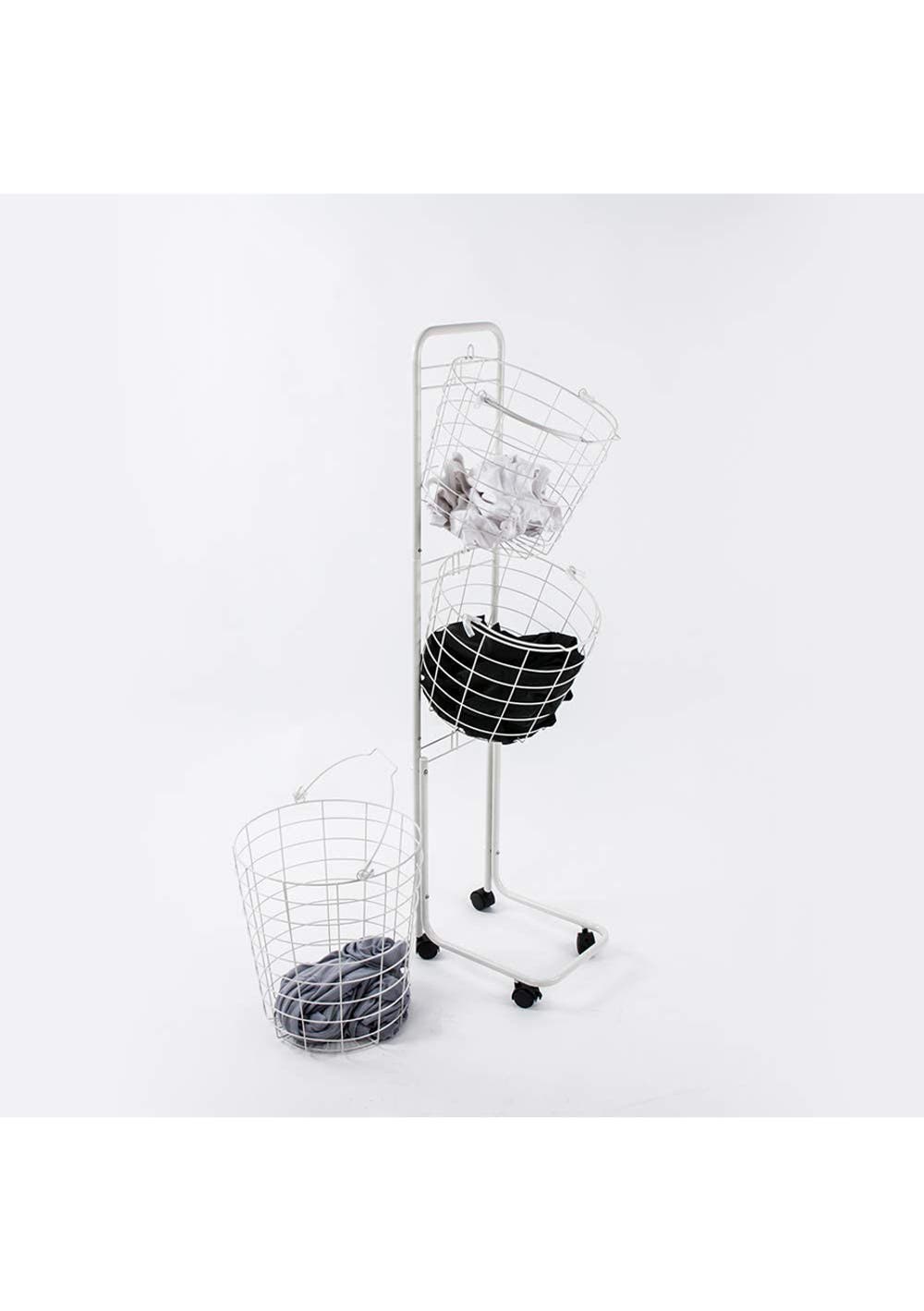 3 Tier Rolling Laundry Hamper with 3 Removable Basket-White