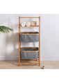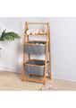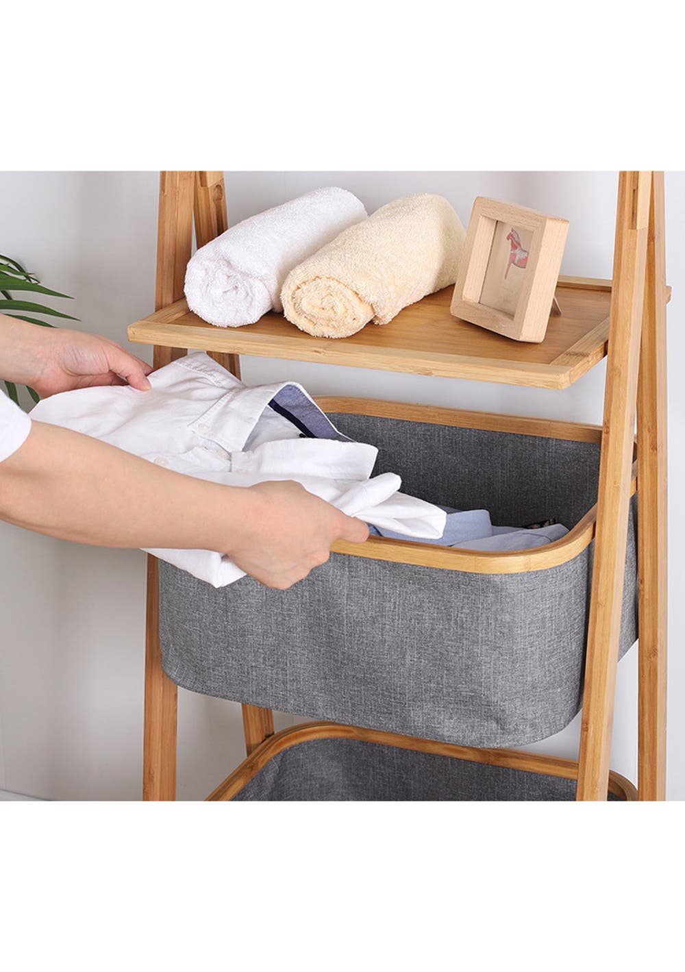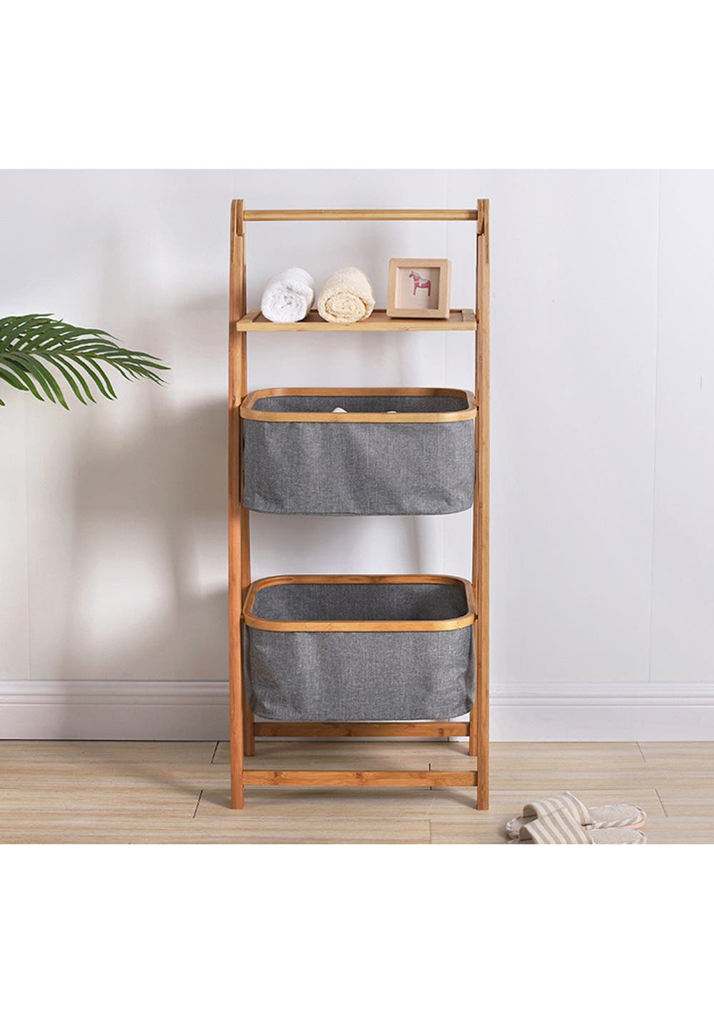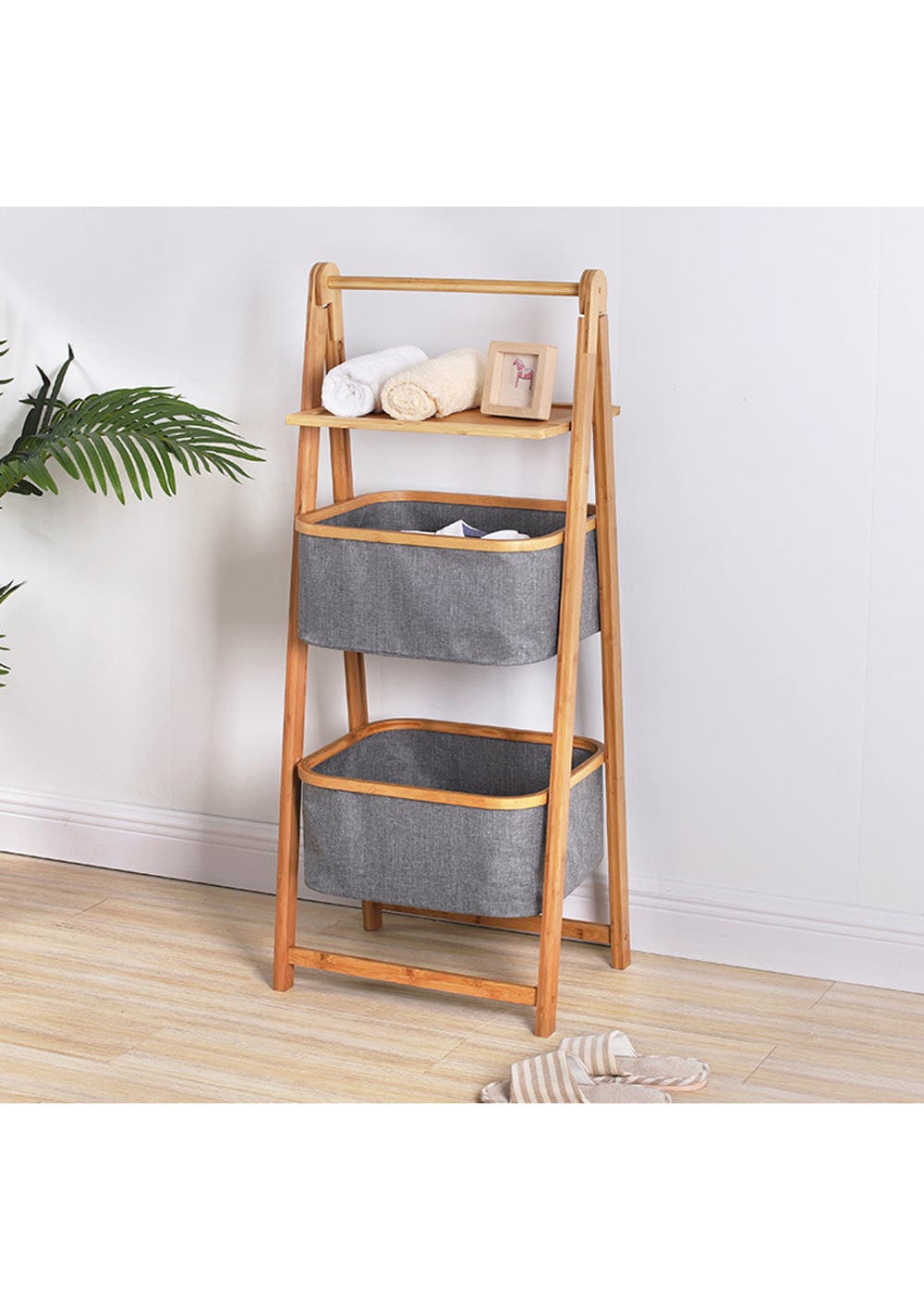 Natural Bamboo 2-Tier Laundry Basket Rack with Shelf