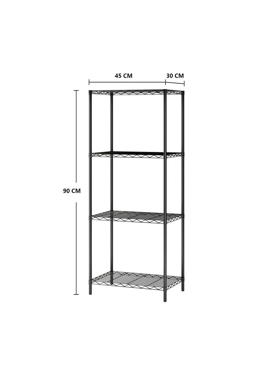 This 4 shelf metal shelves is solid and easy-moving. And it measures 30×45×90cm.So its perfect size makes it great for any place of your home without occupying too much space, such as office, bathroom, kitchen, entryway or closet.