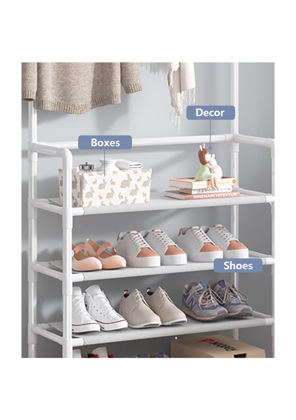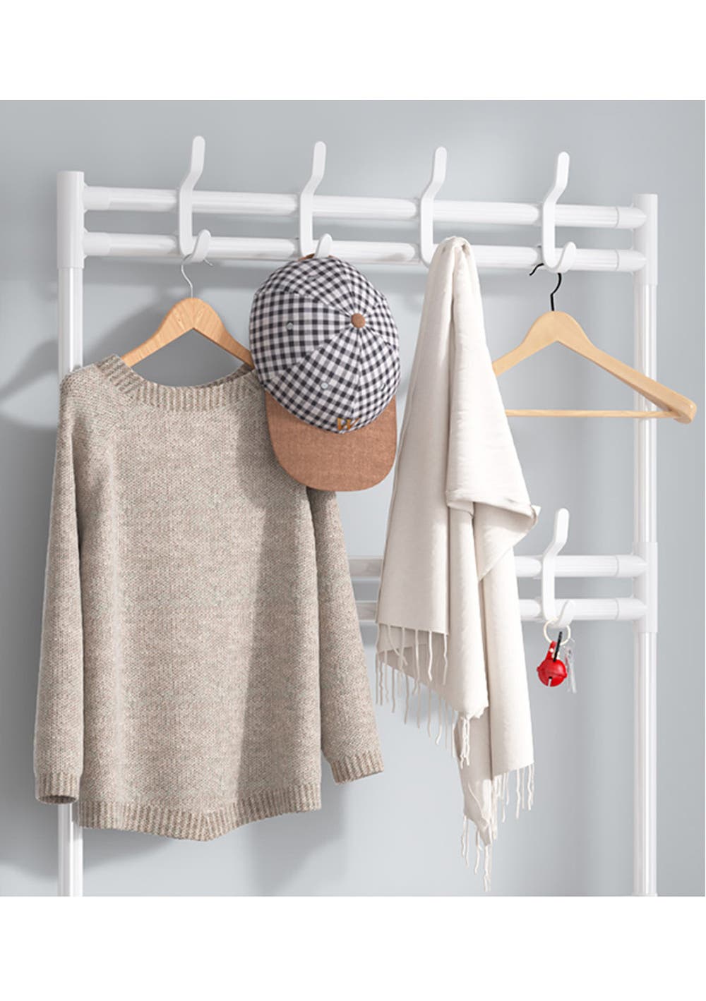 The coat rack part has 2 layers with 8 removable hooks for easy storage of clothes, hats, bags, scarves, umbrellas, keys, etc. to meet various hanging needs shoe storage.