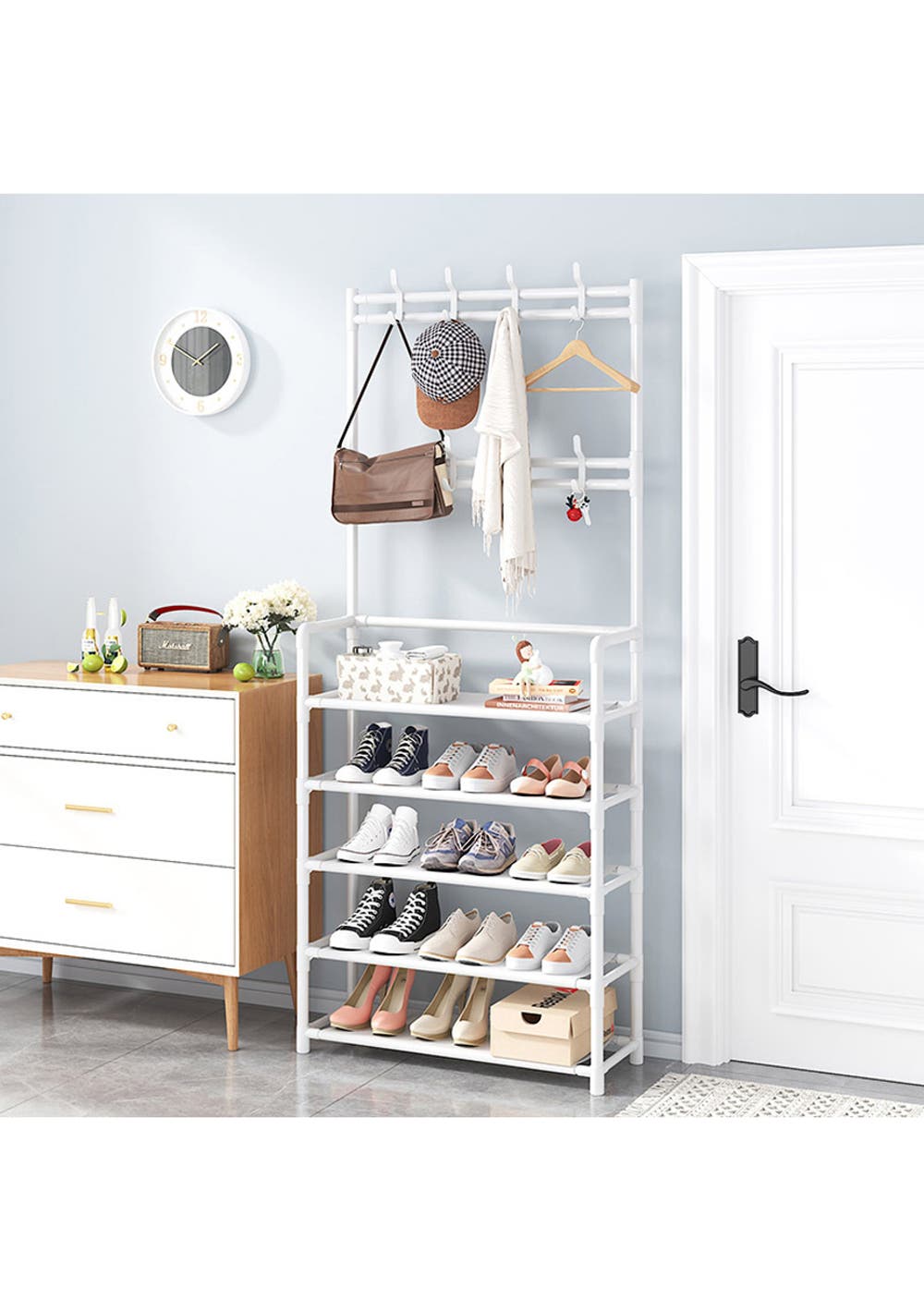 5 Tier Multifunctional Hat Rack Shoes Rack Hall Tree-White