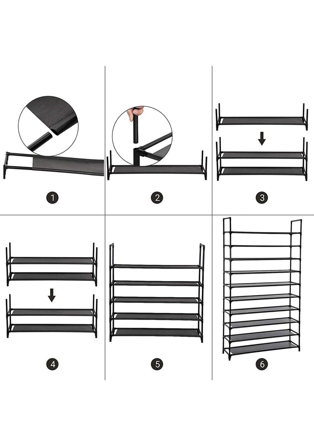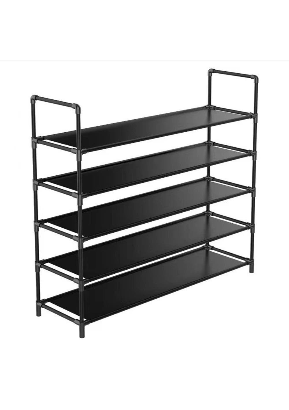 5 Tier Extra Wide Shoe Rack <br>Material: Metal, PP<br>Product dimensions (LWH): 98×30×90cm<br>Package dimensions (LWH): 97 x12 x7cm<br>Weight: 1.43Kg<br>Feature<br>Features:<br>• Non-woven Fabrics Tiers<br>• Maximize Space: With 5 tiers, this shoe rack can hold 25 pairs of shoes, helping you maximize your space. With dimensions of 98CM(L) x 30CM(W) x 90CM(H), this modern shoe rack will keep your entryway, closet, or garage tidy.<br>• Accommodates High Boots: Each shelf is 16CM in height, A layer can be removed to fit taller boots or high heels without bending the shoe's back. suitable for high heels and ankle boots<br>• Flexible Combination: This shoe rack can be separated into different tiers to meet various storage needs. One 5-tier shoe rack can be customized into three lower shoe racks, such as 2-tier, 3-tier.<br>• Material & Structure: This shoe rack features waterproof fabric tiers, durable iron pipes, and tight plastic connectors, making it sturdy enough to hold all of your shoes. It is a lightweight but strong shelving option.<br>Package Includes:<br>• 1 X 5 Tier Shoe Rack<br><br>