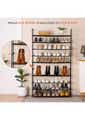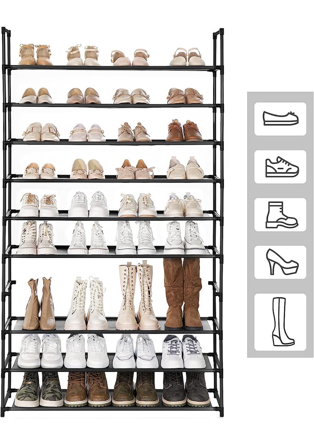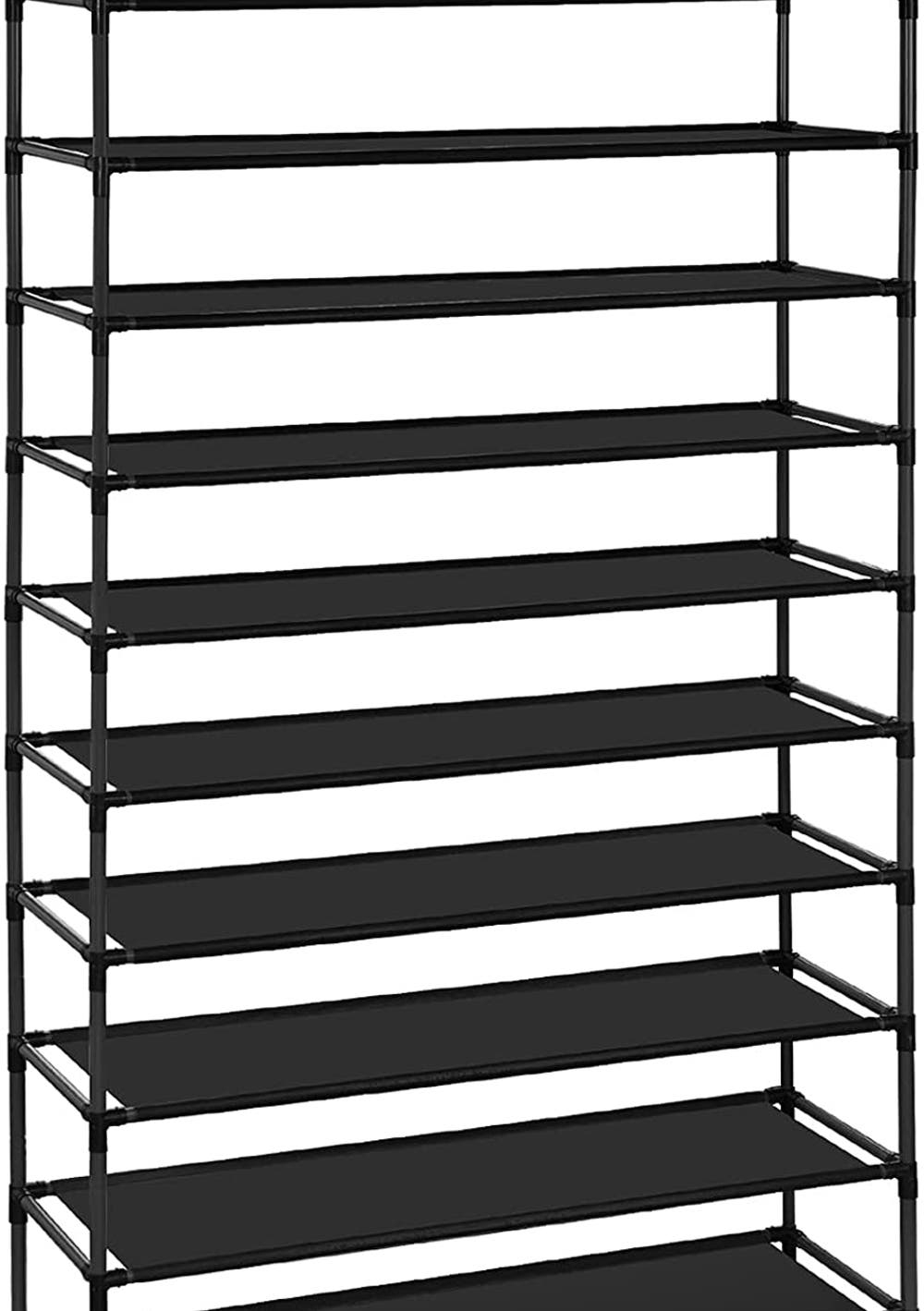 10 Tier Extra Wide Shoe Rack<br>Material: Metal, PP<br>Product dimensions (LWH): 98×30×175cm<br>Package dimensions (LWH): 96x14x12cm<br>Weight: 2.64Kg<br>Features:<br>• Non-woven Fabrics Tiers<br>• Maximize Space: With 10 tiers, this shoe rack can hold 50 pairs of shoes, helping you maximize your space. With dimensions of 98CM(L) x 30CM(W) x 175CM(H), this modern shoe rack will keep your entryway, closet, or garage tidy.<br>• Accommodates High Boots: Each shelf is 16CM in height, A layer can be removed to fit taller boots or high heels without bending the shoe's back. suitable for high heels and ankle boots<br>• Flexible Combination: This shoe rack can be separated into different tiers to meet various storage needs. One 10-tier shoe rack can be customized into three lower shoe racks, such as 2-tier, 3-tier, and 5-tier.<br>• Material & Structure: This shoe rack features waterproof fabric tiers, durable iron pipes, and tight plastic connectors, making it sturdy enough to hold all of your shoes. It is a lightweight but strong shelving option.<br>Package Includes:<br>• 1 X 10 Tier Shoe Rack<br>