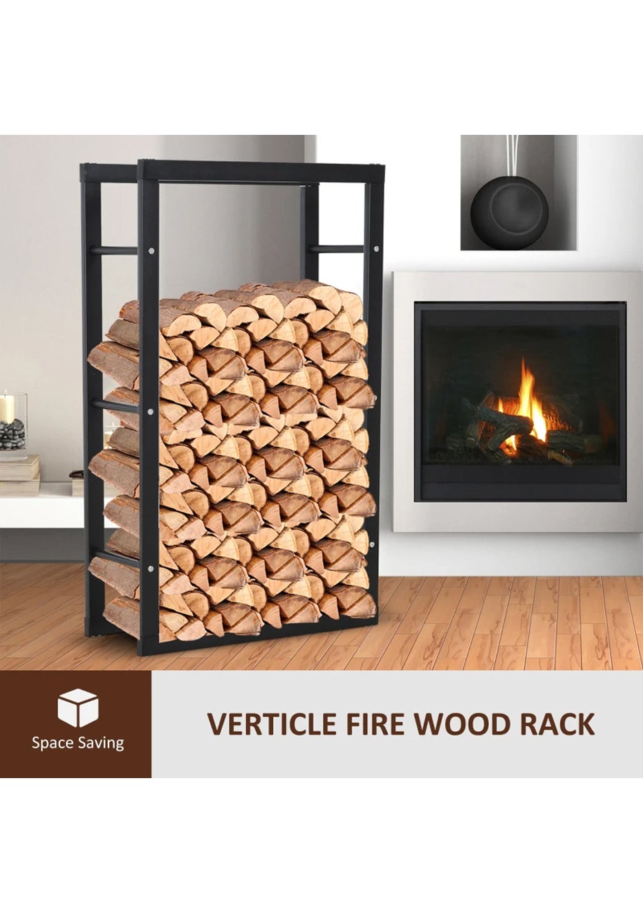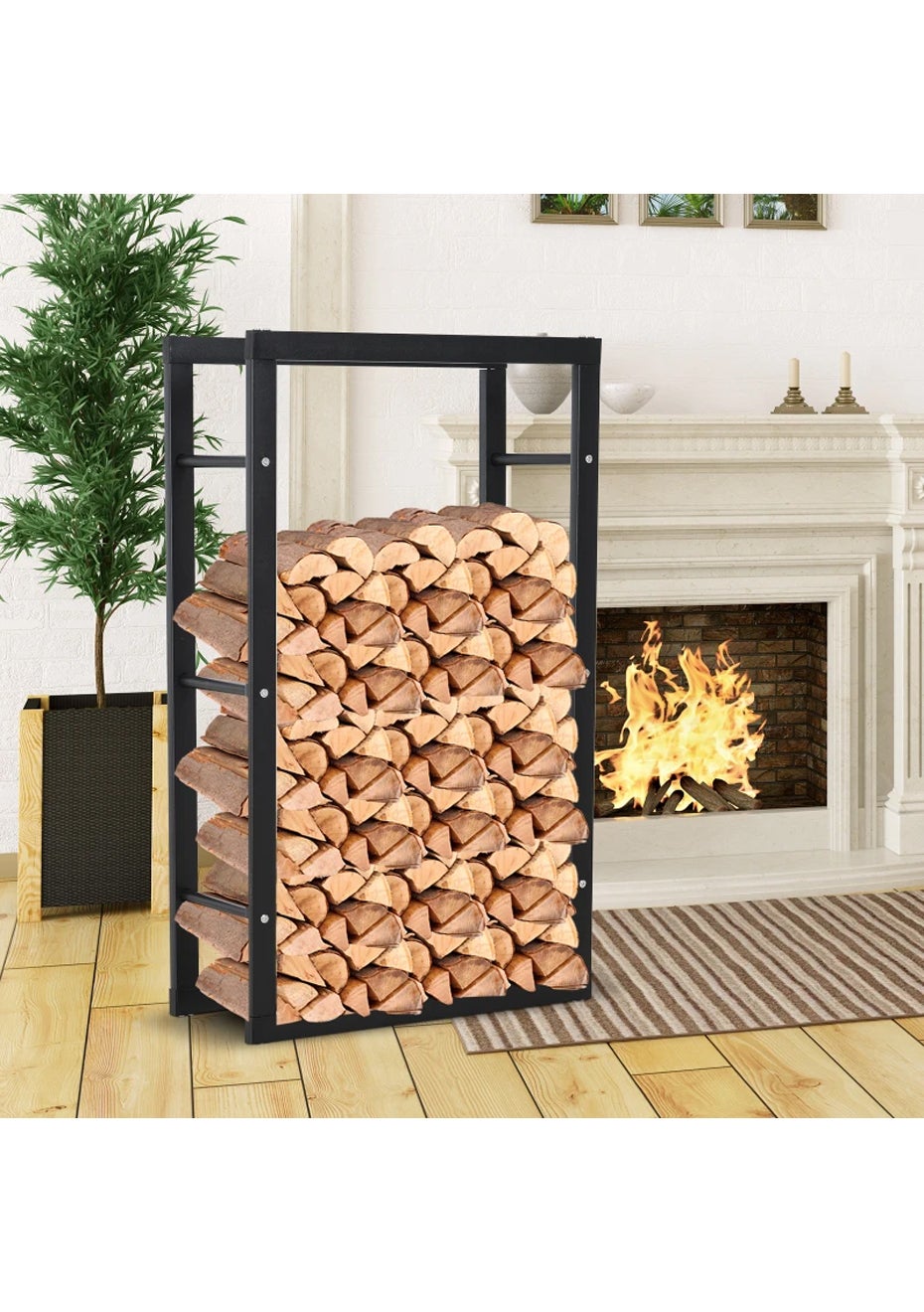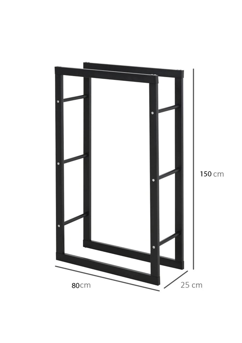 Firewood Rack Wood Storage Rack - 150×80×25cm<br><br>Product Description Revision:<br>Keep your firewood neatly organized and accessible with this Heavy Duty Steel Wood Storage Rack for your fireplace. Its sturdy steel construction and corrosion resistance finish ensure longevity and durability.<br>Key Features:<br>• Material: Steel<br>• Product dimensions (LWH): 150 x 80 x 25 cm<br>• Package dimensions (LWH): 150x15x12cm<br>• Weight: 10kg<br>About This Item:<br>• Generous Size: The firewood rack measures 80cm in length, 25cm in width, and 150cm in height. This generous size allows for the storage of large amounts of firewood for those cold nights.<br>• Durable and Sturdy: Made from durable solid steel with a black powder-coated finish, this wood holder rack offers tough corrosion resistance and is built to last.<br>• Easy Installation: Comes with instructions that make it easy to install. Plus, it doesn't take up much space when the wood is removed.<br>• A Valuable Addition to Your Home: This rack is perfect for storing, drying, or displaying firewood. It fits well on your porch, deck, under eaves, or patio.<br>Package Includes:<br>• 1 * Fireplace Heavy Duty Wood Storage Rack<br>• 1 * Screws Set<br>
