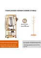Portable Rolling Bamboo Garment Coat Clothes Rack<br>Material: Bamboo<br>Product dimensions (LWH): 60x35x165cm<br>Package dimensions (LWH): 86x33x9cm<br>Weight: 4Kg<br>Features:<br>• COMFORTABLE HOUSEHOLD DRESS: This modern and multifunctional clothes rack is designed to provide convenience and reduce fatigue in your daily routine. It can be placed in various areas of your home, such as the porch, foyer, hallway, living room, balcony, bathroom, and kitchen, allowing you to easily hang bags, coats, shoes, and casual clothes.<br>• HIGH-QUALITY MATERIALS: Made from natural bamboo, this clothes rack offers an eco-friendly and visually appealing solution. The use of environmentally friendly coatings ensures the health and well-being of you and your family.<br>• EASY TO ASSEMBLE: The rack is easy to assemble and features a sturdy trapezoidal structure that provides excellent stability. With a load capacity of around 50kg, it can securely hold your clothes and hats.<br>• SMOOTH SURFACE: The bamboo clothes rack has a finely polished and clear lacquer coating, making it safe to touch and assemble. The smooth surface and fine bamboo structure add an elegant touch to your interior and exterior decor, complementing the colors of nature.<br>• PORTABLE ROLLING DESIGN: This clothes rack is equipped with four wheels, allowing you to easily move it around your home. It also comes with hooks for additional hanging options.<br>Package Includes:<br>• 2 x Upper Side Panels<br>• 4 x Base Poles<br>• 3 x Shelf Panels<br>• 1 x Round Pole<br>• 14 x Long Screws<br>• 8 x Short Screws<br>• 2 x Tools<br>• 4 x Wheels<br>• 4 x Hooks<br>