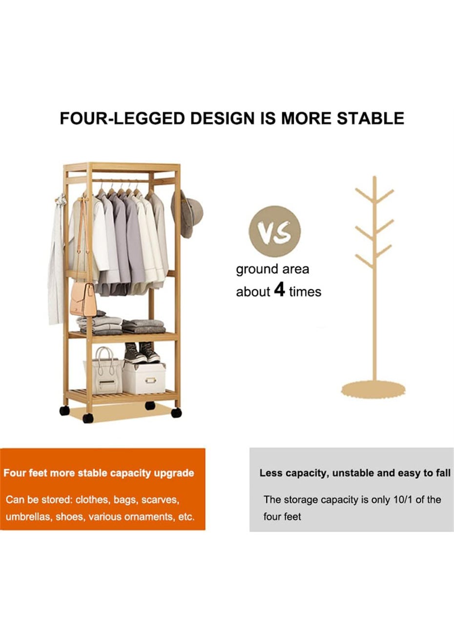 Portable Rolling Bamboo Garment Coat Clothes Rack
