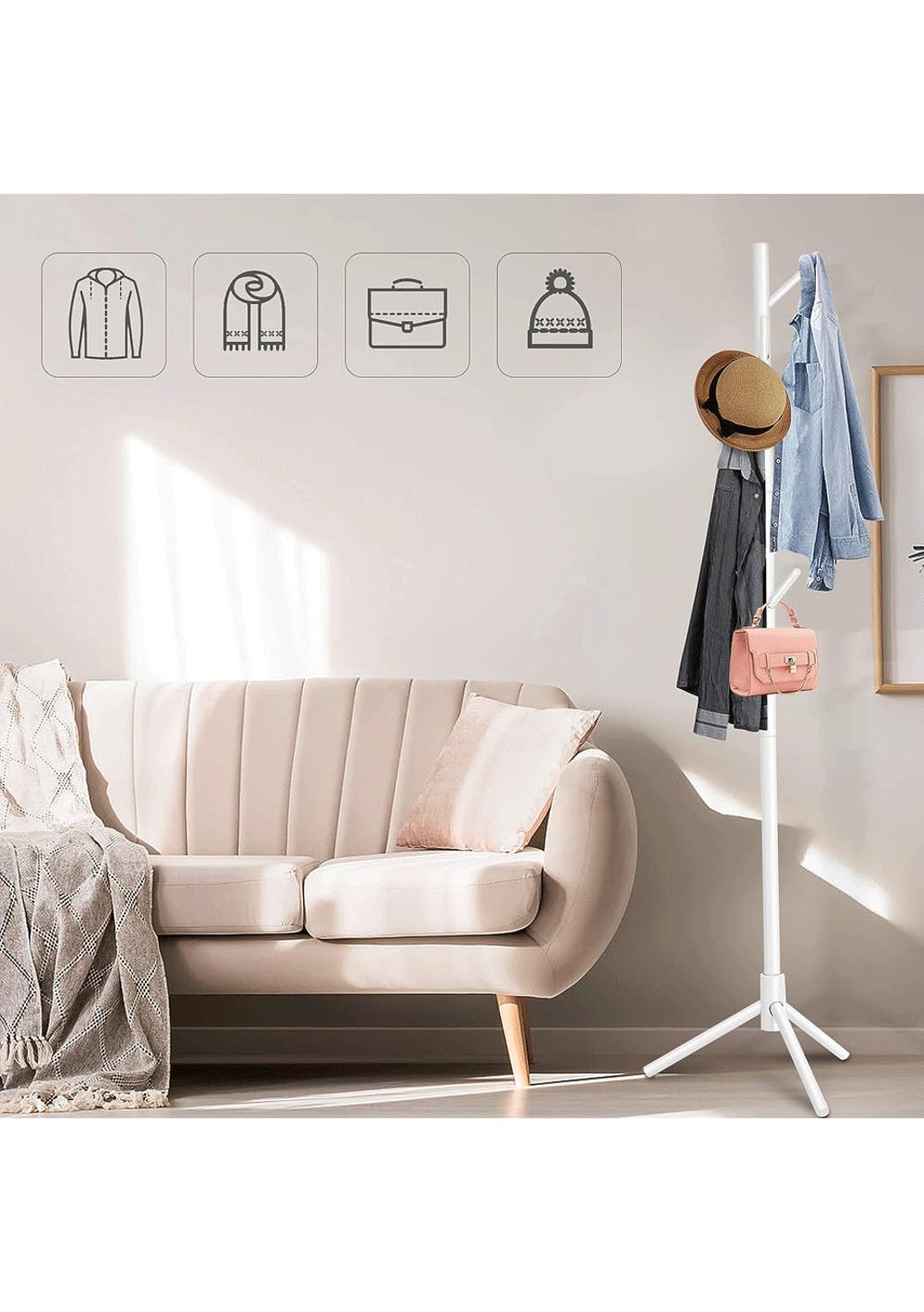 Solid Wood Coat Rack 8 Hook – White<br>Material: Solid Wood<br>Product dimensions (LWH): 44x175 cm<br>Package dimensions (LWH): 54x13x8 cm<br>Weight: 1.35Kg<br>Product Overview:<br>Bring order and style to your home with our Solid Wood Coat Rack featuring 8 Hooks, finished in White. This stand-alone coat rack, made from robust solid rubberwood, offers excellent sturdiness and stability, even when loaded with heavy outerwear. It's not just a coat rack - it's a versatile storage solution for your hats, scarves, ties, and more, helping you keep your space tidy and organized.<br>Key Features & Advantages:<br> Customizable Height: Our coat rack comes in 4 detachable sections, allowing you to adjust the height to cater to different needs – use just 2 or 3 sections for kids, or all 4 for adults.<br> High-Quality Material: Made from solid rubberwood and finished with non-toxic, safe paint, our coat rack adds a touch of natural elegance to any room while ensuring your family's safety.<br> Exceptional Stability: Our free-standing coat rack is designed with a 3-prong leg base for ultimate stability, ensuring it can handle heavy coats and outerwear without wobbling.<br> Hassle-Free Use: No tools required for assembly or disassembly, and its compact design means it occupies minimal space. Keep your sofa, chairs, entryway, living room, bedroom, and office clutter-free with this handy storage solution.<br><br>Package Includes:<br>• 1 x Solid Wood Coat Rack with 8 Hooks