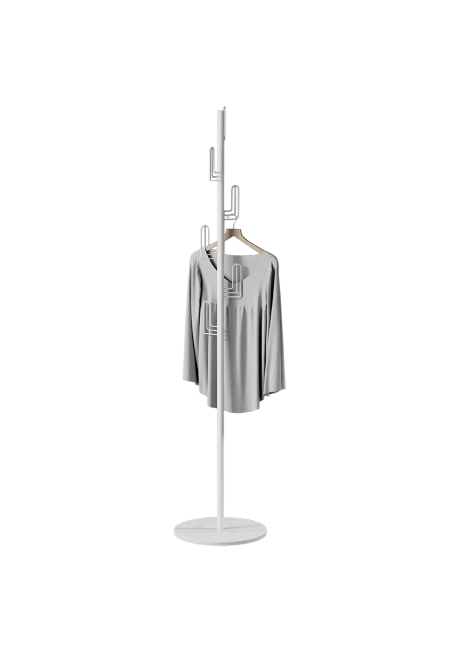 Cactus Metal Coat Rack with Sintered Stone Base - White<br>Material: Steel Stone<br>Product dimensions (LWH): 32 x 170 cm<br>Package dimensions (LWH): 53 x37x17cm<br>Weight: 3.4Kg<br>Elevate the aesthetics of your interior with this functional yet artful cactus coat rack, ensuring you and your guests have a convenient and stylish place to hang belongings.<br><br>Features:<br>• Distinctive Cactus Design: With its 6 cactus-shaped hooks, this coat rack doubles as a decorative piece for your home or office, adding a touch of nature-inspired elegance to your space.<br>• Robust and Durable: Crafted from high-quality metal and featuring a sintered stone base, this coat rack ensures durability and longevity. The polished, thickened rods and hooks ensure your clothing remains snag-free.<br>• Stable and Safe: The heavy stone base combined with the thick rod design offers unmatched stability, ensuring the rack remains upright even when loaded with heavy coats.<br>• Effortless Assembly: No tools? No problem! Thanks to the threaded inserts, assembling this coat rack is a breeze. Just tighten the column and hooks, and within minutes, your coat rack is ready to use.<br>• Multipurpose Usage: Ideal for your hallway, bedroom, office, or living room, this versatile coat rack can hold more than just coats. Use it for hats, bags, towels, scarves, jackets, umbrellas, and more.<br>• <br>Package Includes:<br>• Sintered Stone Base<br>• 3 Poles<br>• Screw Set<br>• 6 Anti-Scratch Feet