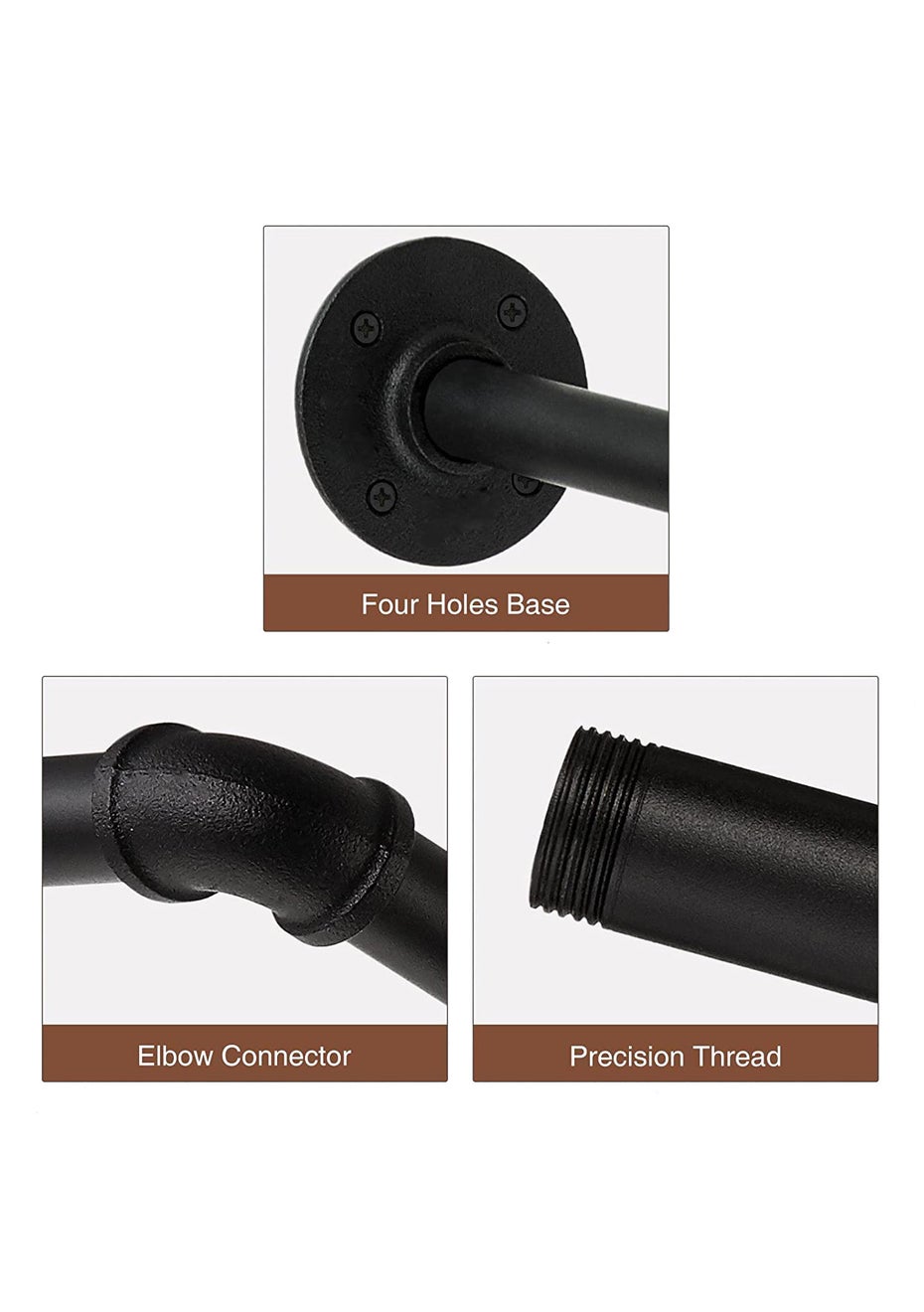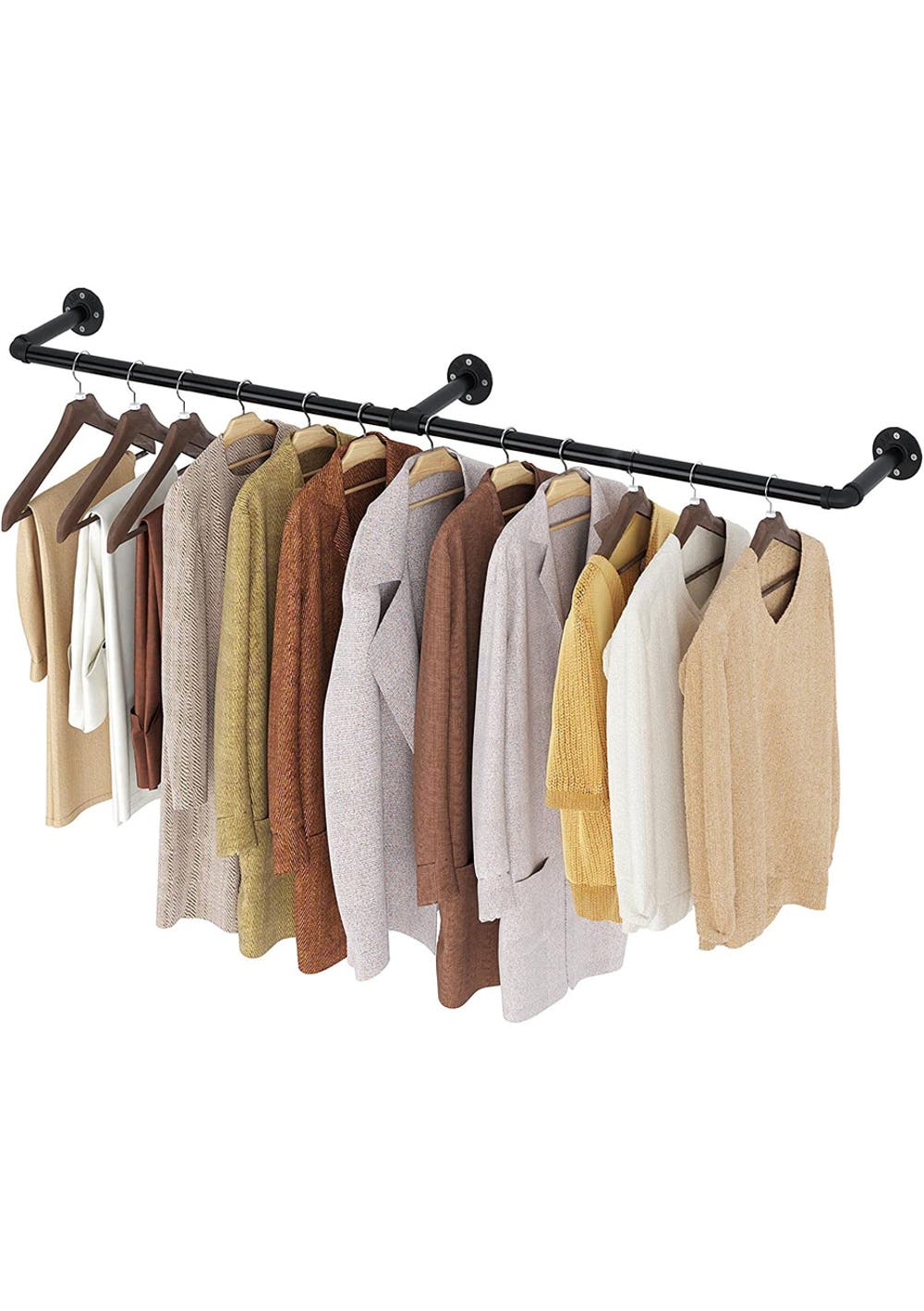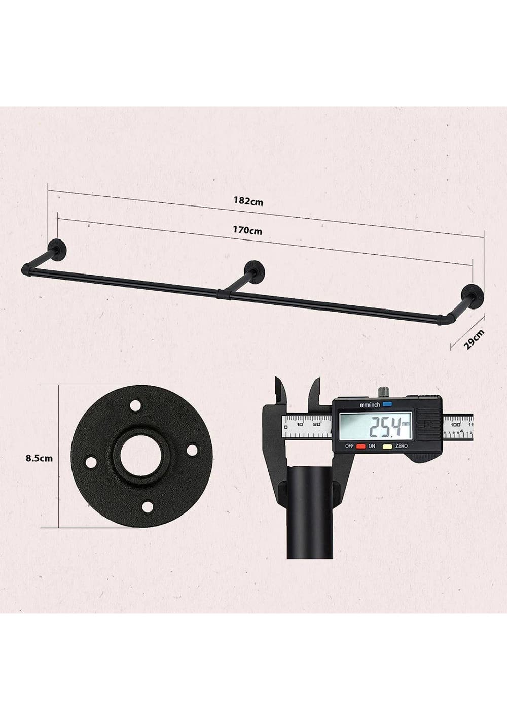 Industrial Pipe Clothes Rack - 170CM<br>Material: Iron<br>Product dimensions (LWH): 182cm × 29cm<br>Package dimensions (LWH): 90X12 X12CM<br>Weight: 1.6KG<br>Features<br>【Size & Load Capacity】: This Industrial Pipe Towel Bar is spliced using a 3/4" thread. The support plate measures an 8.5cm flange diameter. The rod length is 85CM X 2. Overall measures: 182cm L x29cm H.<br>【Sturdy & Durable】: Made of strong malleable iron with a black matte surface finish, this rack is extremely durable and built to last. It can hold a good amount of clothes, keeping your garments and accessories always organized and tidy. We have additionally processed the hanger with an anti-rust layer for long-term enjoyment.<br>【Easy to Install】: Our rod for clothes hanging comes with detailed illustrated instructions. Simply connect the accessories and then fix them with screws and anchors to complete the installation.<br>【Widely Used】: This pipe rack is suitable for a wide range of wall styles. It includes hardware to mount on concrete, tile walls, or other types of walls. It can be used in a hallway, entryway, bedroom, closet, laundry room, or balcony.<br>【Industrial and Retro Design】: Crafted from metal pipes, this clothing rack adds an industrial vintage style to your home or retail store. With its cool industrial look, it easily matches with different styles of rooms.<br>Package Includes<br>1 x Industrial Pipe Clothes Rack (Black Matte Surface)<br>3 x Screws Set<br>