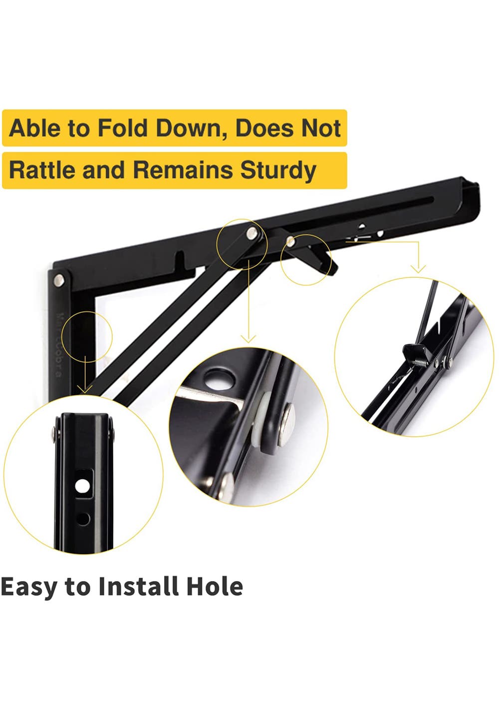 Folding shelf brackets use heavy duty cold rolled steel plate + black paint manufacture, which can effectively isolate the oxygen in the air and ensure that it does not rust for a long time.