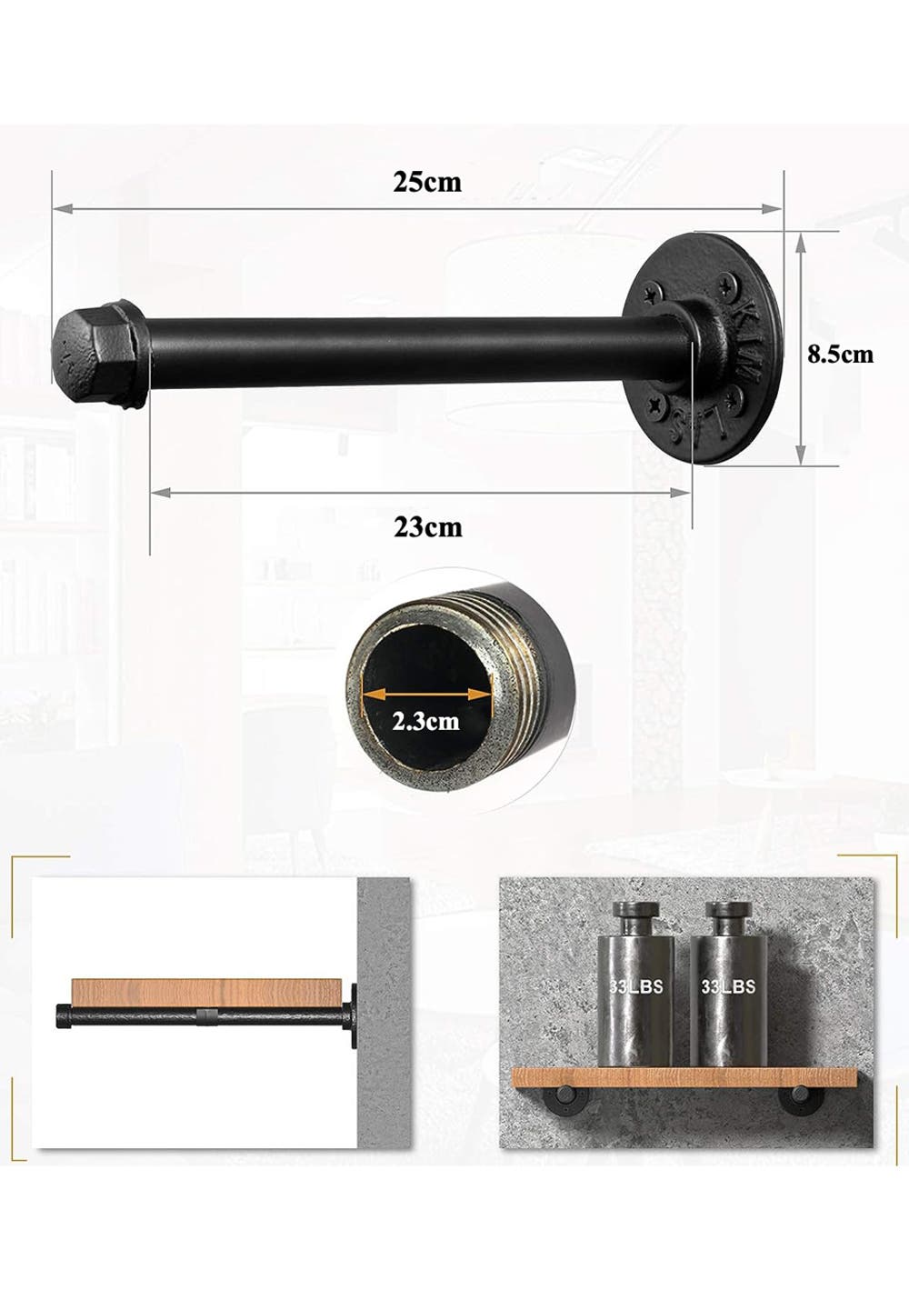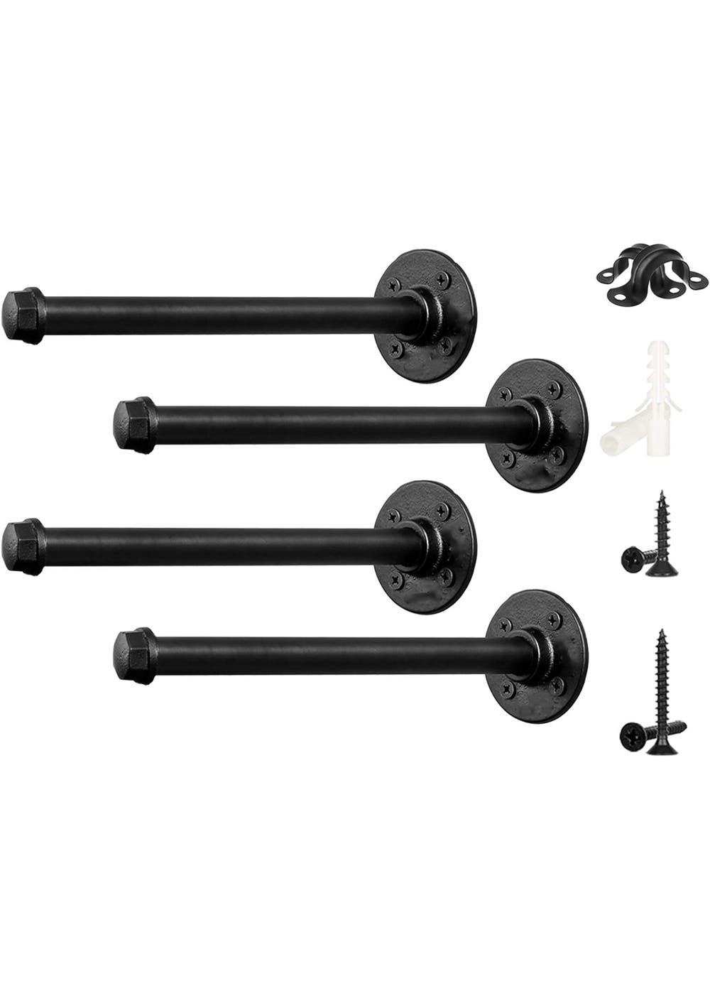 4-pack Industrial Iron Pipe DIY Floating Shelf Bracket-25CM<br><br>Material: Iron<br>Package dimensions (LWH): 33x13x5cm<br>Weight: 1.4kg<br>• Please note that the package does not include a wooden board.<br><br><br>Features:<br>• Black Matte Surface: Elevate the appearance of your shelf with the bracket's black matte surface, which complements the industrial design with a touch of sophistication.<br>• Pipe Shelf Brackets: Constructed from black iron and topped with a wear-resistant coating, these brackets are designed to stand up against daily wear and tear, scratches, corrosion, and tarnishing. Their design is reminiscent of vintage and industrial styles, making them a trendy choice for any decor.<br>• DIY Brackets: Set up is a breeze with these easy-to-install brackets. Simply secure the pipe shelving in place, and then you can place a wood board on top for an instant shelf. <br>• Maximized Convenience: These wall-mounted pipe shelves don't just serve a decorative purpose. They provide additional storage space where you need it, making organization easier and more convenient for you.<br>• Versatile Application: The shelf brackets are versatile and can be used in various settings including shops, workshops, motorhomes, backyards, rooms, kitchens, bathrooms, and more. <br><br>Package Includes:<br>• 4X [¾" Cast Iron Pipe Cap]<br>• 4X [¾" Cast Iron Floor Flange]<br>• 4X [¾" Cast Iron Industrial Pipe -25cm]<br>• 16 x Long Screws Set<br>• 8 X strap Screws set<br>• 4 X pipe Straps<br>• 16X Wall Anchors<br>Please note that the package does not include a wooden board.