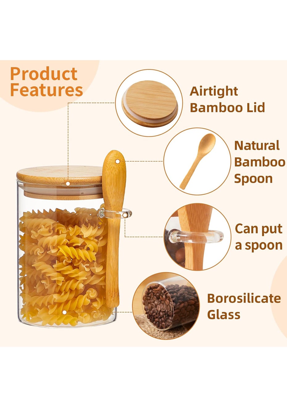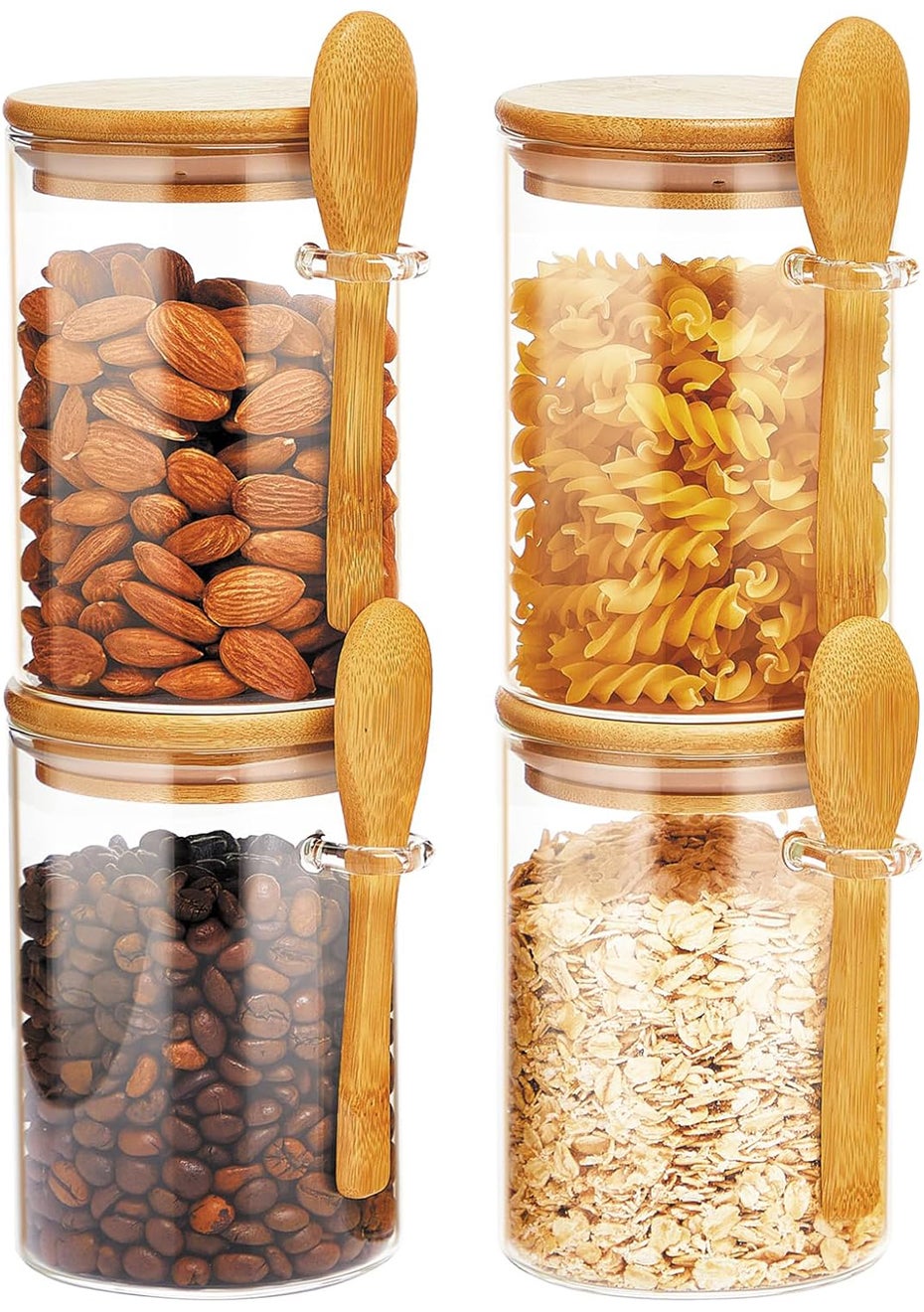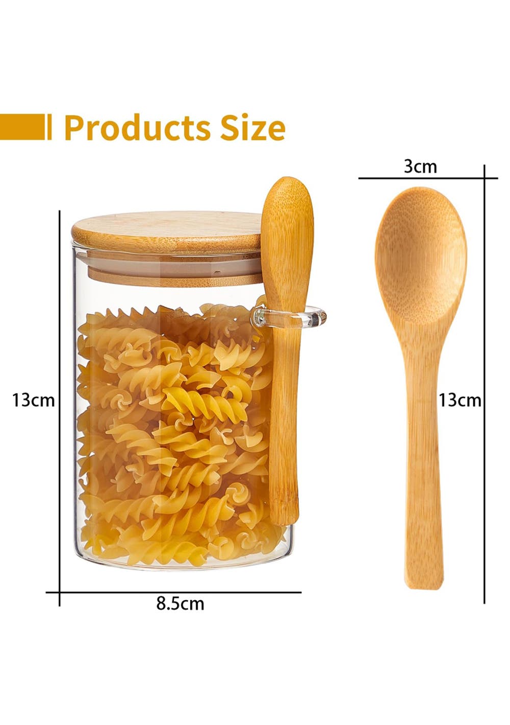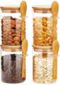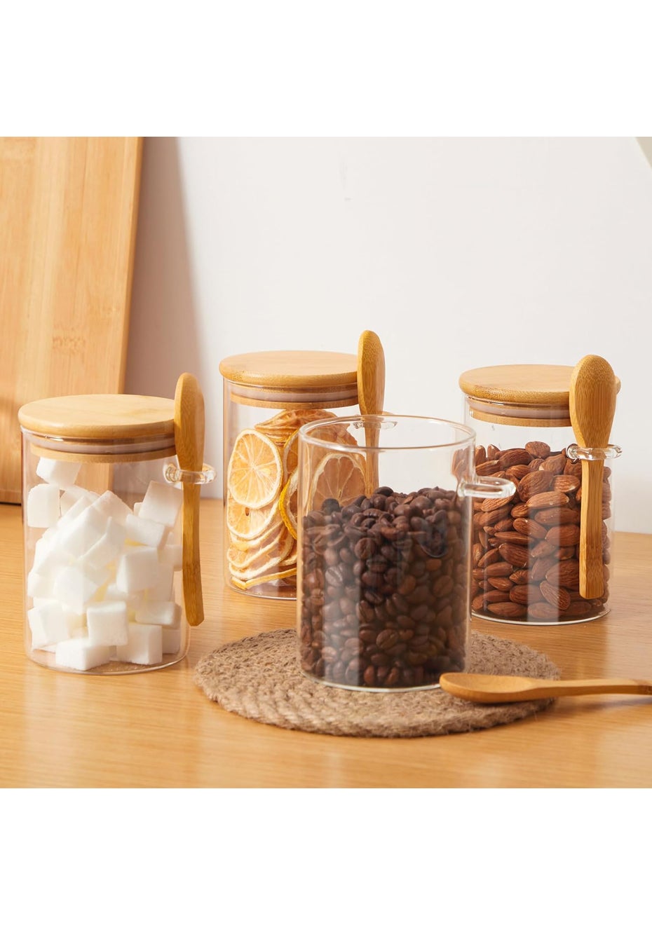 Set Of 4 500ML Glass Storage Jars with Bamboo Lids and Spoon