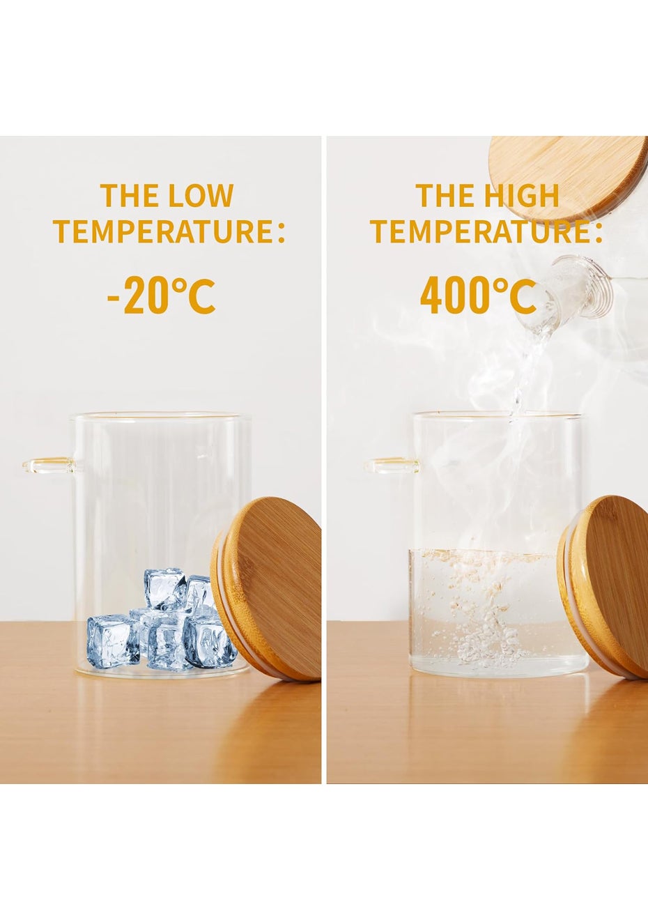 Material: High borosilicate glass, Bamboo lids with silicone seals