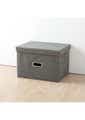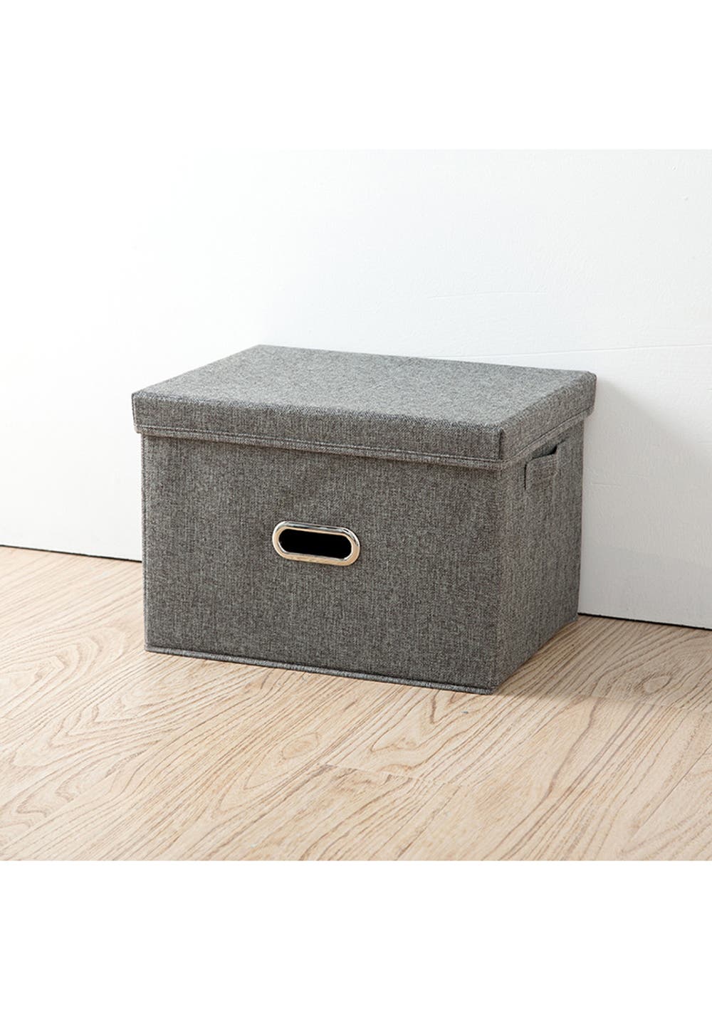 Collapsible Storage Bins with Lids and Handles - M<br>Material: Cardboard, Polyester non-woven fabric<br>Product dimensions (LWH): 37x27x26cm<br>Package dimensions (LWH): 39x28x4cm<br>Weight: 980g<br>Features:<br>• Additional Storage Space: This fabric storage box is designed to meet various storage needs, providing additional storage space for organizing sundries effectively.<br>• Intimate Design: The storage box comes with a lid to keep items protected from dust, ensuring they remain clean and tidy. The handles on both sides make it convenient for you to move the box around.<br>• Space-Saving: This storage box can be placed on cabinets or under the bed, and it can be easily folded up for storage when not in use, helping you save space.<br>• Smart Storage: Perfect for storing clothes, magazines, books, toys, CDs, newspapers, office supplies, and more. It is suitable for use in various rooms such as the living room, bedroom, store room, conservatory, playroom, etc.<br>• Easy To Clean: The storage box can be easily cleaned by wiping it with a soft cloth. However, it is not washable, so it's essential to keep it dry. Its simple and retro fashion style complements any decoration.<br>Package Include:<br>• 1 x Linen Collapsible Storage Bins with Removable Lid<br>