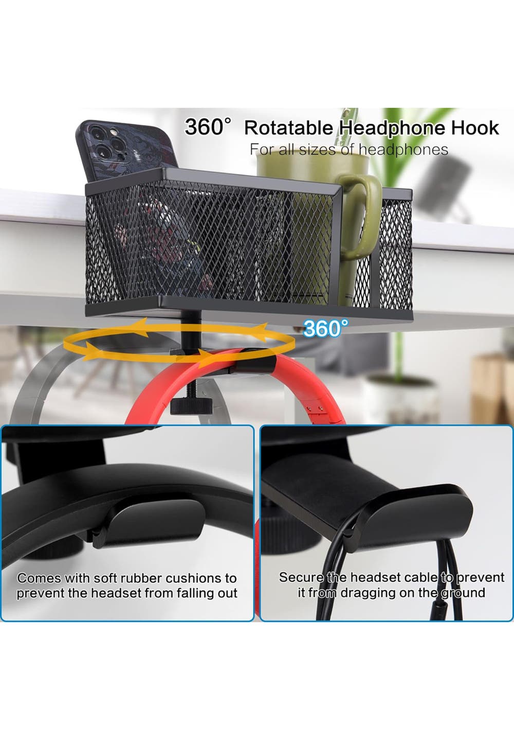 360° Rotatable Headphone Hook: A unique feature that not only holds your headphones securely but also rotates for optimal placement, complete with soft rubber pads for added protection.