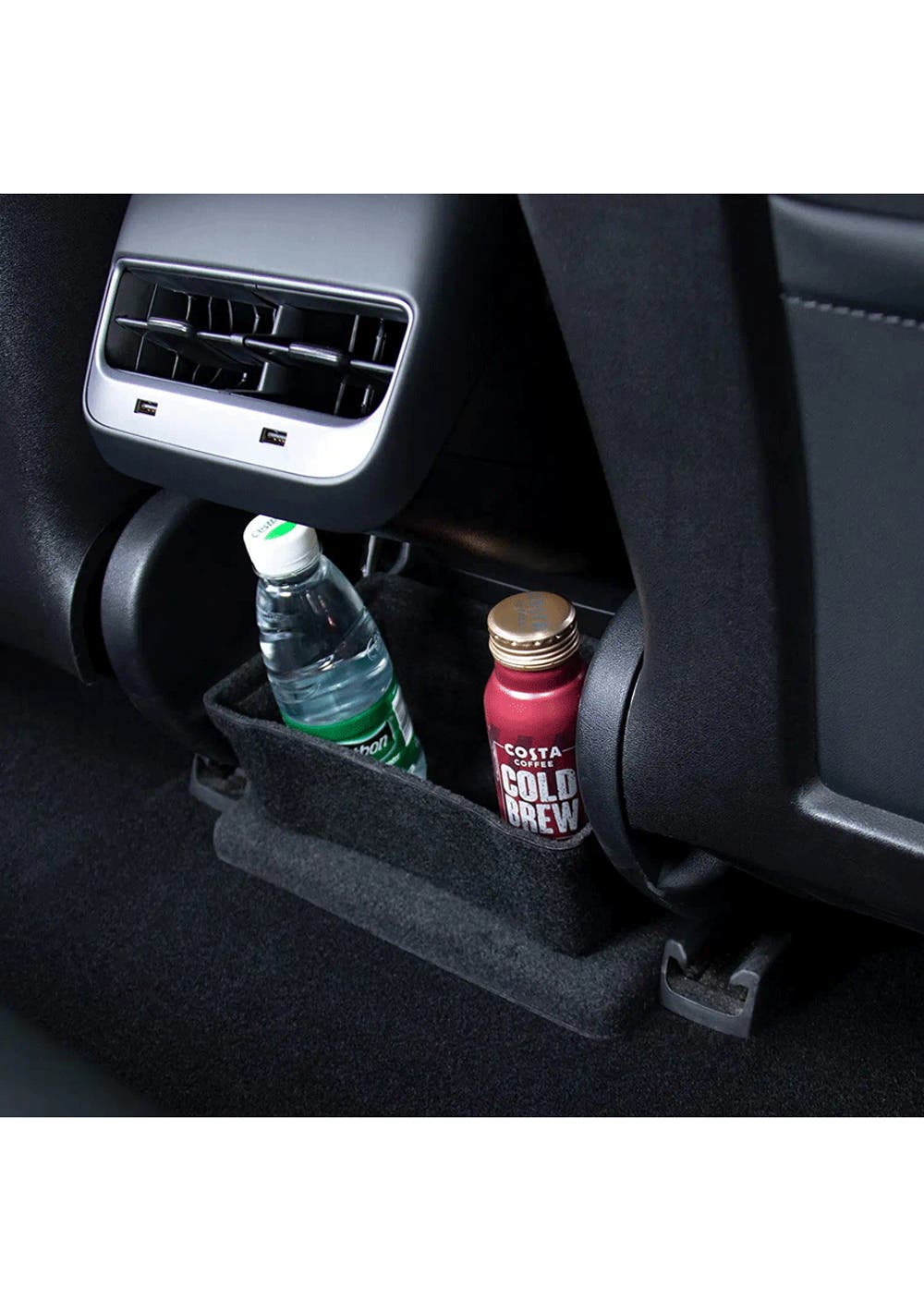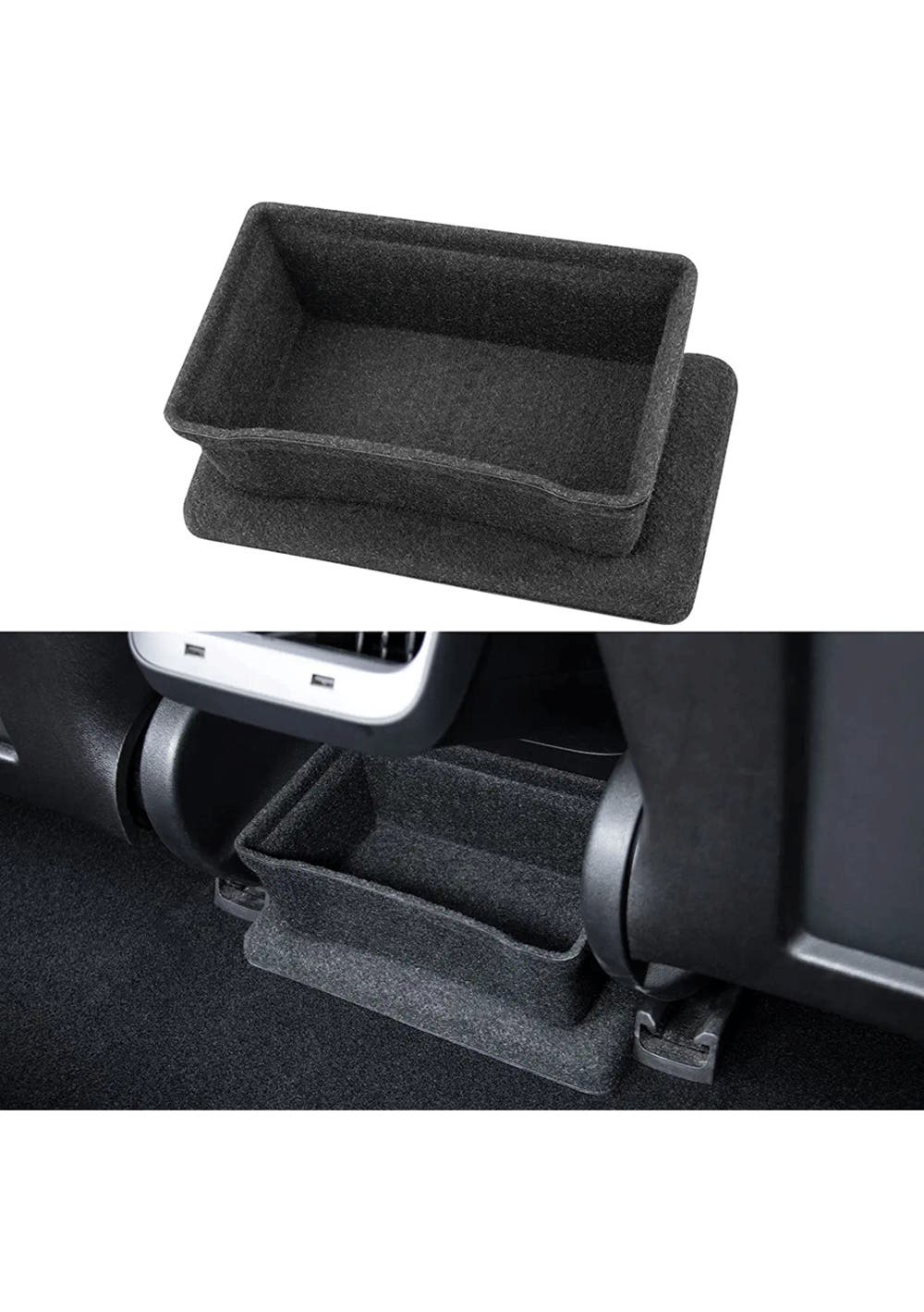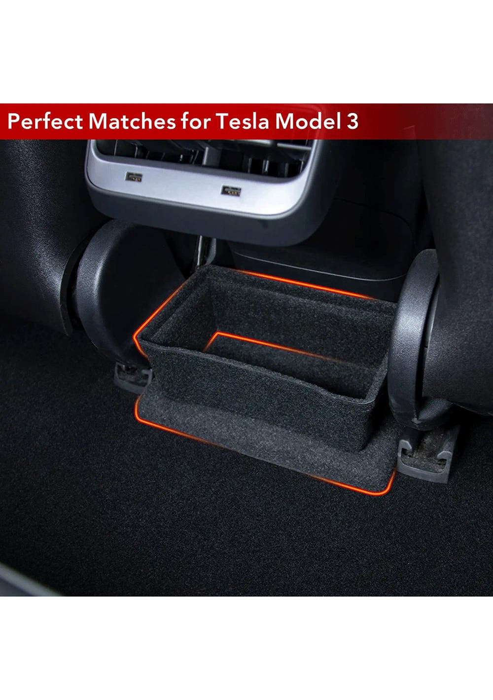 Perfect Match: Rear Seat Storage Cubby and Cup Holder fits perfectly under the rear exhaust port of Model 3, with no gaps and does not affect the footpad.