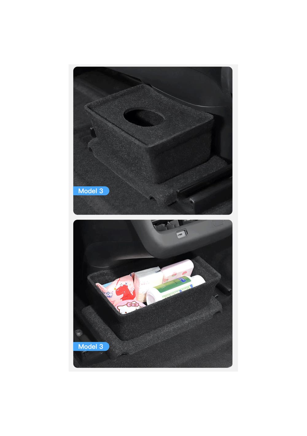 Flocked Material: The Tesla Model 3 rear central storage box is made of high-quality ABS material, which is non-toxic and tasteless. Internal flocking can effectively prevent scratches, mess and reduce noise.