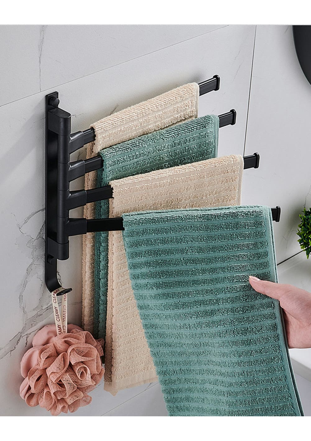 4-Arm Bathroom Swing Hanger Towel Rack Black
