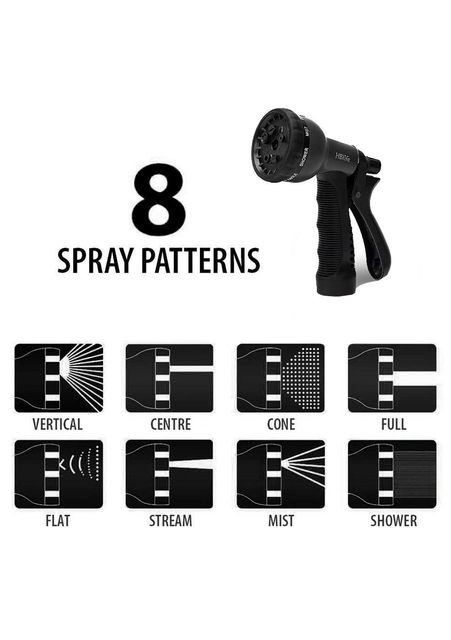 ***The length of hose varies with water pressure, expanding up to 15 m
