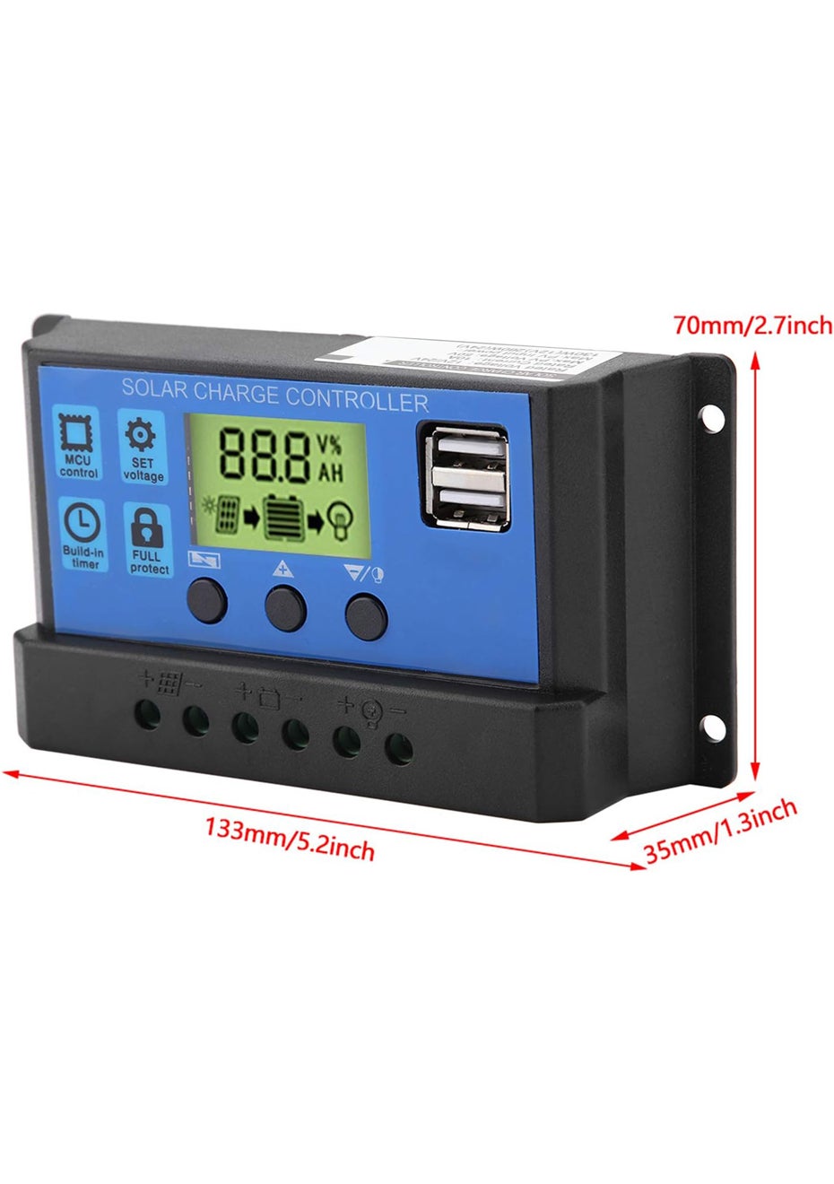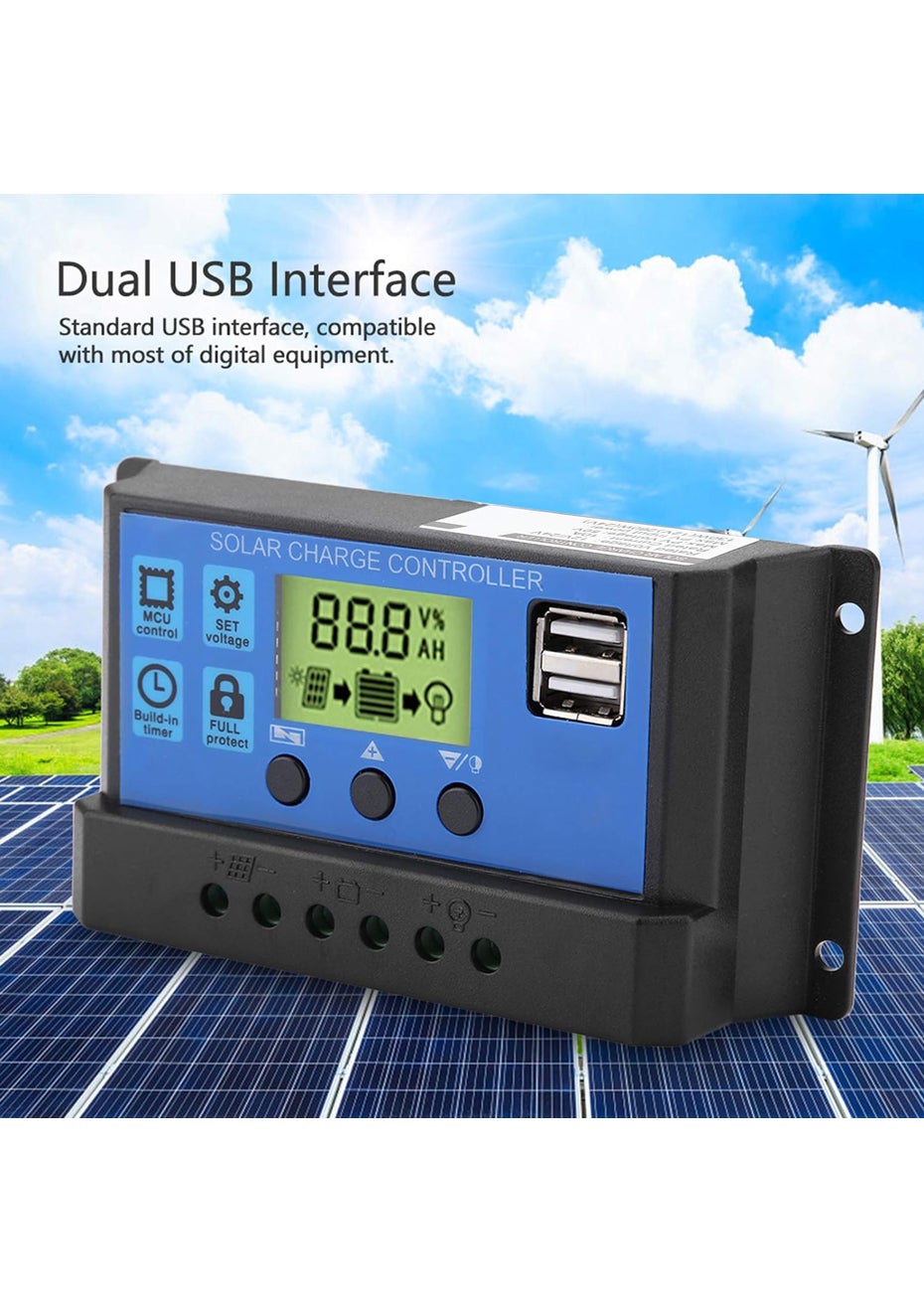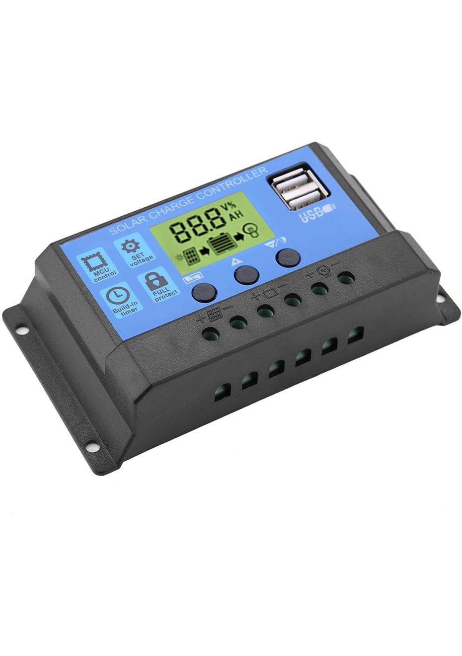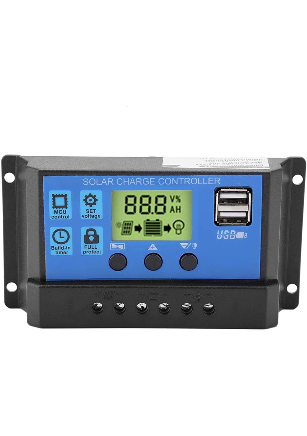 Harness the power of the sun with 10A Solar Panel Charge Controller, your essential partner for solar energy management. Designed for 12V/24V systems, it adjusts to various battery types, ensuring compatibility and efficiency. The controller employs a 3-stage PWM charging process to maximize battery life and performance. Safety is prioritized with advanced protection features guarding against electrical mishaps. Setup is a breeze with an intuitive backlit LCD display, making it a top choice for home, commercial, or industrial applications. Built to last with industrial-grade materials, Auronto stands by its product with exceptional customer support. Embrace sustainable energy solutions with confidence using the Auronto Solar Charge Controller.