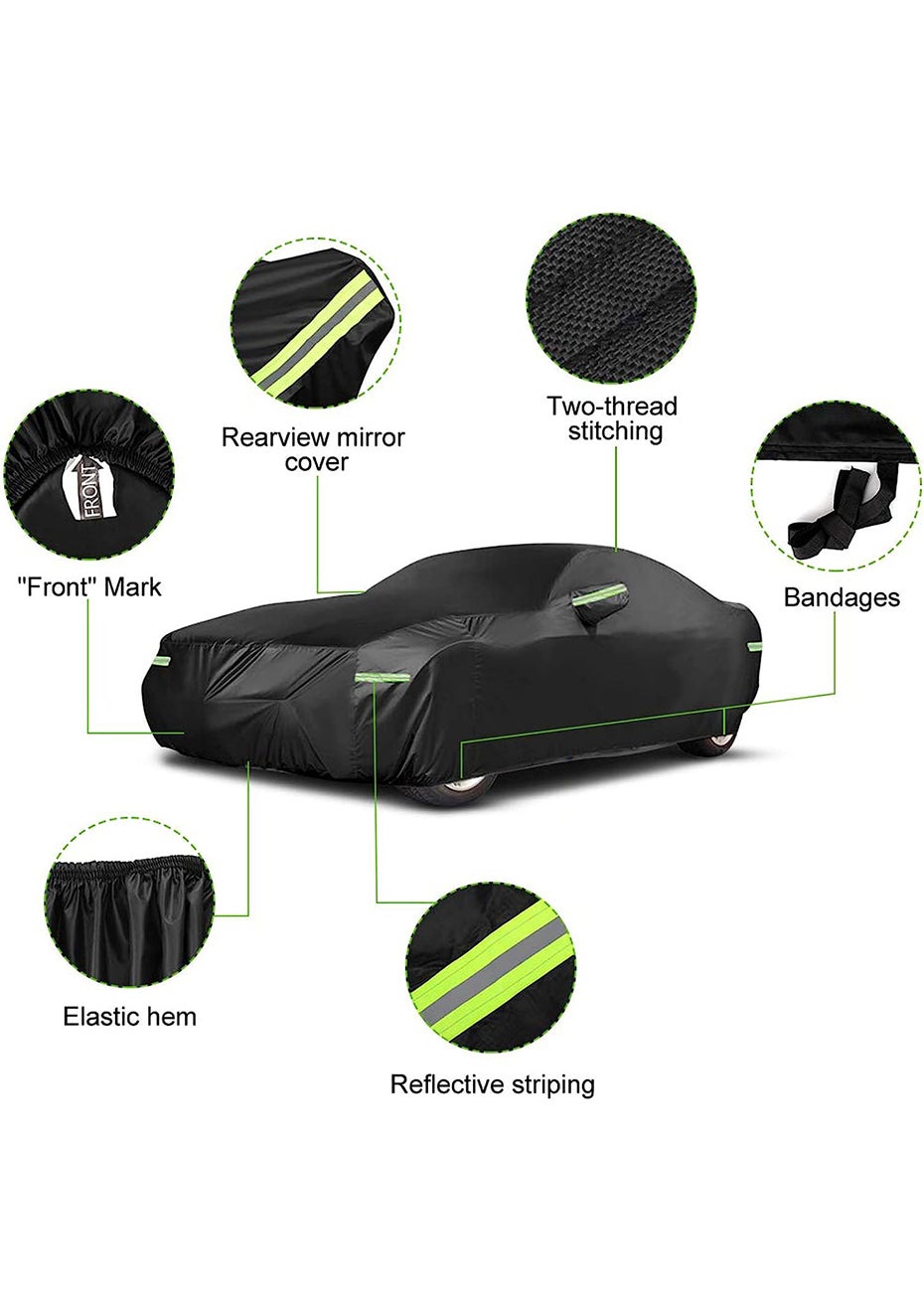 All-Weather Heavy Duty Car Cover for Sedans 4.9M<br>Material: Oxford Cloth<br>Product dimensions (LWH): 490×180×150CM<br>Package dimensions (LWH): 45 x35 x10cm<br>Weight: 2.6Kg<br>Key Features & Advantages:<br> Year-Round Protection: This car cover offers all-season protection, preventing heat buildup in the summer and window freezing in the winter. It covers windshields and windows, providing comprehensive protection against various elements.<br> Side Zipper Design: The car cover features zippers on the driver and co-pilot side for easy access without removing the cover. Six night reflection stripes on the surface enhance visibility and safety at night.<br> High-Quality Material: The cover is made from high-density and breathable DuPont Oxford cloth, offering superior sunproof, dustproof, and anti-UV properties. The soft fabric also ensures your vehicle's paint is well protected.<br> Scratch & Dirt Protection: The car cover effectively safeguards your vehicle's surface from scratches, harmful UV rays, dirt, dust, frost, fallen leaves, industrial pollutants, and bird droppings.<br> Convenient Package: The car cover comes with a storage bag, securing straps, a wire rope, and a locker, making installation and storage a breeze.<br>Package Includes:<br>• 1 x All-Weather Heavy Duty Car Cover<br>• 1 x Storage Bag