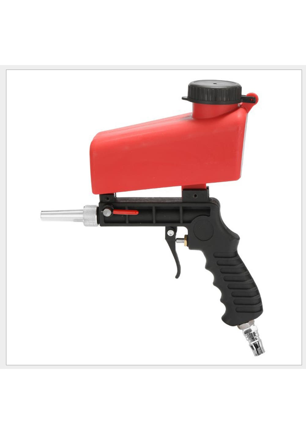 Hand Held Sandblaster Sand Blaster Gun Kit Material: Steel ABS Product dimensions (LWH): 28 x 26 cm Package dimensions (LWH): 22 x 20 x 8 cm Weight: 480 g Features  Durable Sand Blaster That Blasts High Speed Media Particles, Which Quickly Remove Paint, Rust, Corrosion And Scales.  Use Blaster with Multiple Blast Media Types Like Sand, Aluminum Oxide Abrasives, Beads, Soda Or Fine Walnut Shells Depending On Your Projects Application Needs.  Flow adjustment switch can adjust the flow of sandblasting, adjustable material valve gives you precise control.  Small size and easy to carry, easy to operate by hand.  44 to 116 PSI; Operating Pressure 60 to 100PSI; Air Consumption: 8.8 to 10.6CFM; Capacity: 30 oz. (900 ml); Nozzle Size: 5 mm; Air Inlet: 1/4" NPT; Includes a feed lid, hopper, metal nozzle, flow regulation, trigger switch, non-slip handle, intake port.  Package Include  1 x Hand Held Sandblaster Sand Blaster Gun Kit