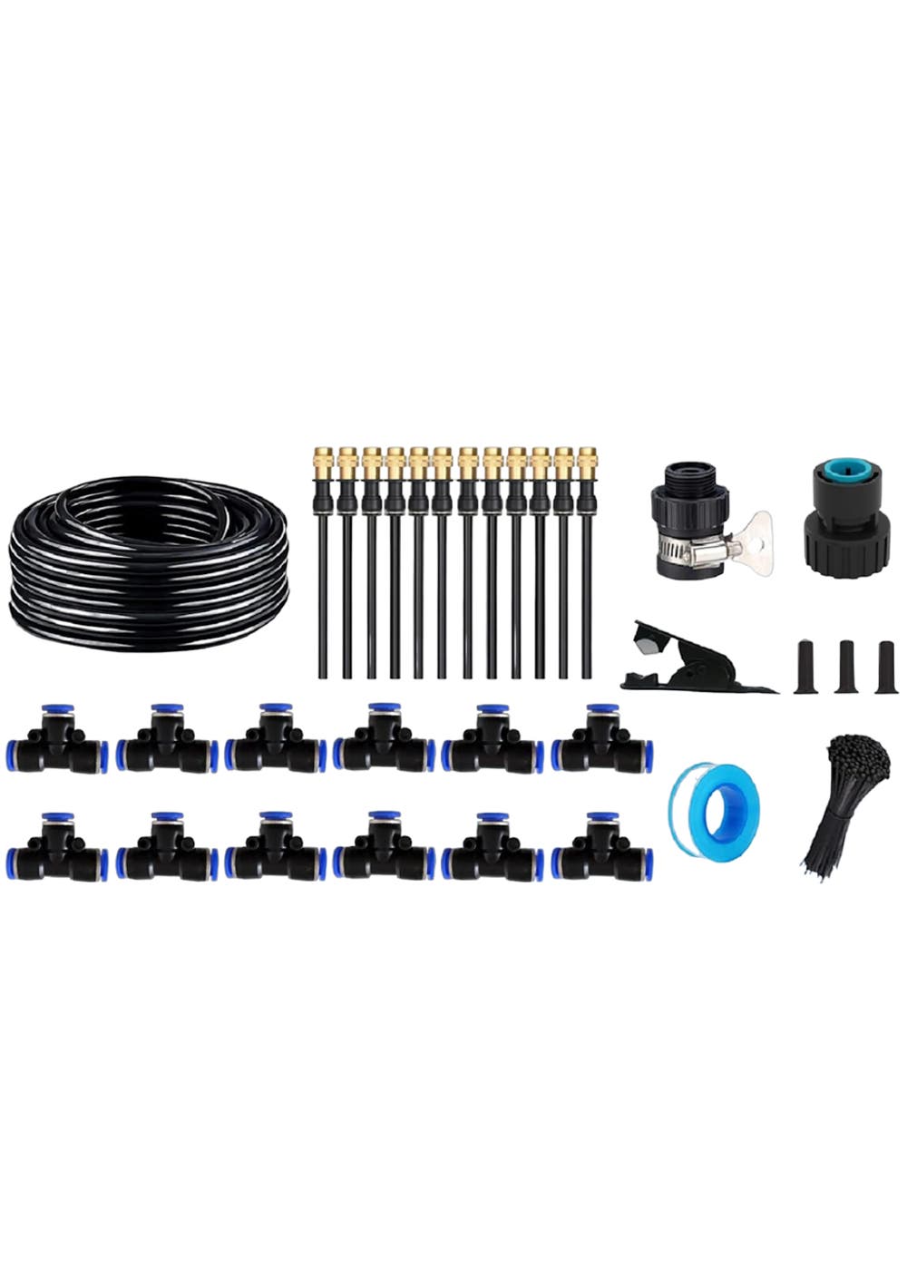 Package Includes: 1x 12MMX15M Tube, 15x 360-Degree Copper Nozzles, 15x Tees, 1x Quick Connector, 1x Universal Faucet Connector, 1x Pipe Cutter, 1x Bundle of Cable Ties, 1x Roll of Water Tube Tape 3X Tees plug