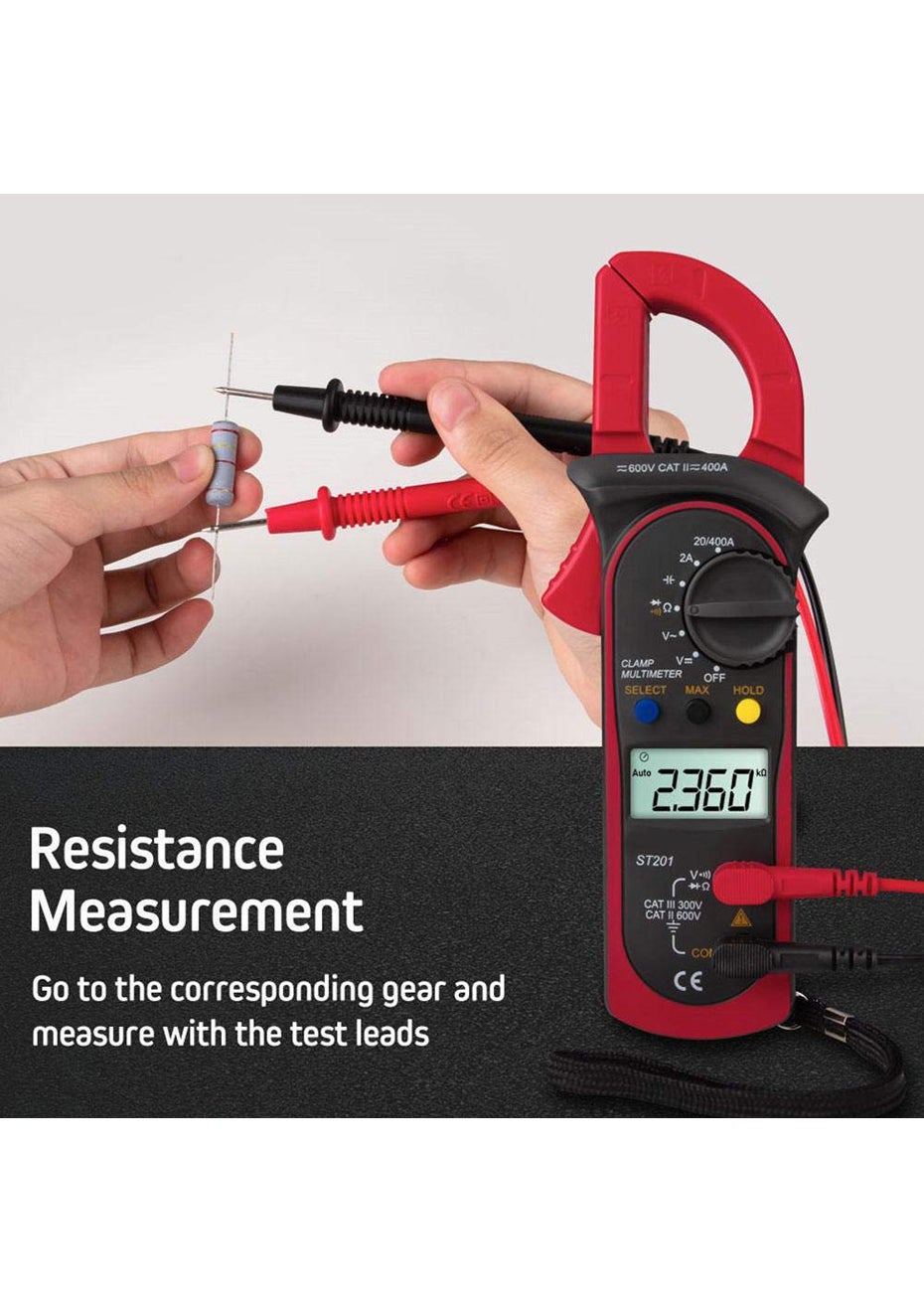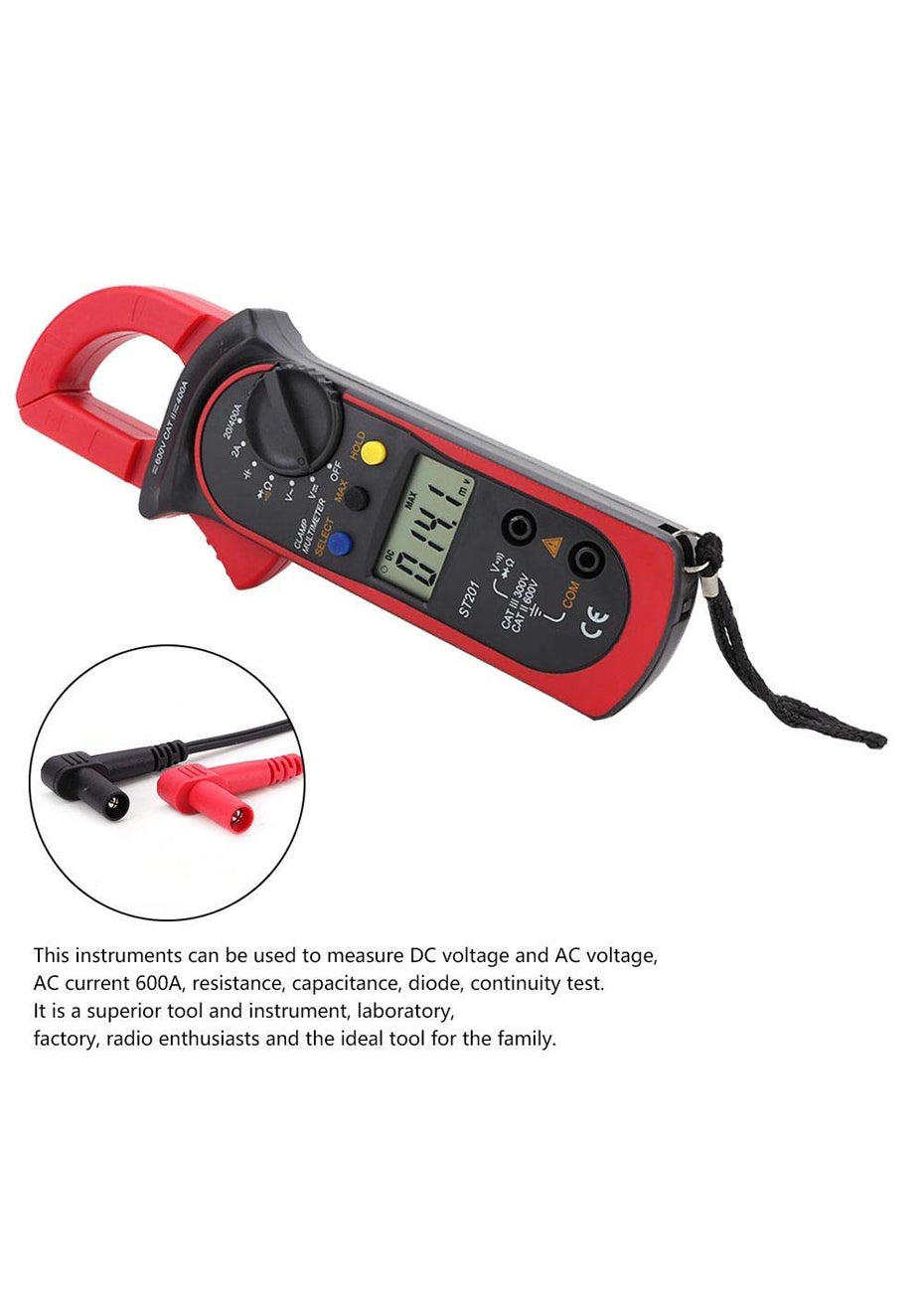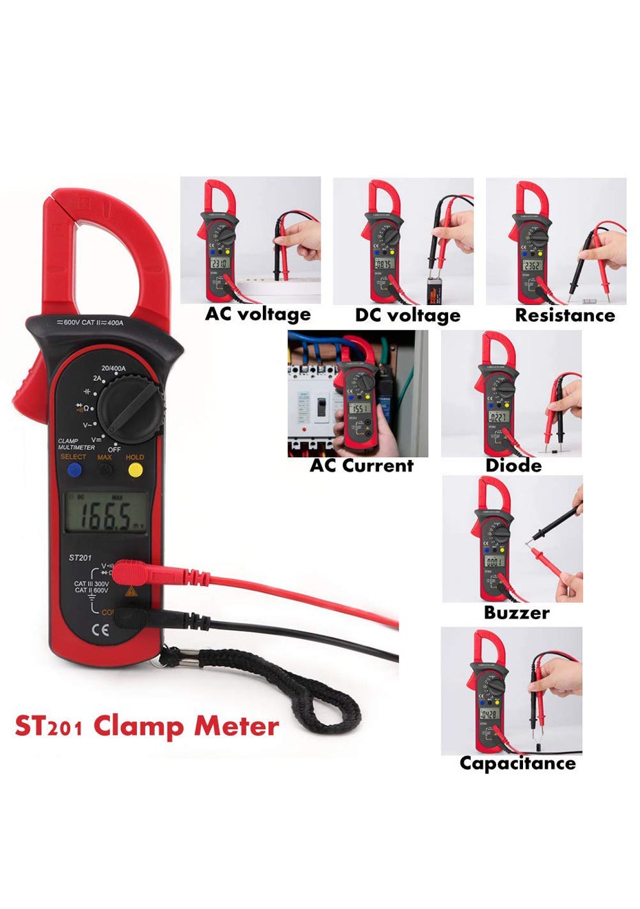 Digital Clamp Meter Multimeter Material: ABS Package dimensions (LWH): 25X12X5cm Weight: 370G Key Features: High Precision Measurement: This digital clamp meter offers 3 3/4-digit automatic readings, delivering stable performance and precise measurements. With its high reliability and overload protection, it's an essential tool for both professionals and DIY enthusiasts. Clear LCD Display: The multimeter features an easy-to-read LCD display, powered by AAA batteries with a boost power supply. The display ensures clear visibility of readings, even in low-light conditions. Comprehensive Testing Range: This versatile clamp meter can measure DC voltage, AC voltage, AC current up to 600A, resistance, capacitance, diode functionality, and continuity. It’s perfect for a wide range of electrical and electronic applications. Advanced Measuring Capabilities: The meter provides detailed measurement ranges: DC Voltage: 200mV, 2V, 20V, 200V, 600V AC Voltage: 200mV, 2V, 20V, 200V, 600V AC Current: 2A, 20A, 400A Capacitance: 40nF, 400nF, 4uF, 40uF, 400uF Resistance: 200Ω, 2KΩ, 20KΩ, 200KΩ, 2MΩ, 20MΩ Durable and Portable Design: Made from robust ABS material, the multimeter is built to last. Its compact size and included storage bag make it easy to carry and store, ensuring it's always ready for use. Package Includes: 1x Clamp Ammeter 2 X Batteries(AAA) 2x Test Leads 1x Storage Bag 1x Instruction Manual