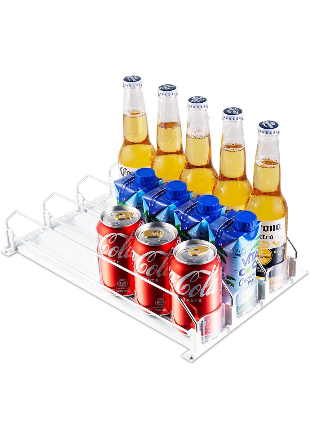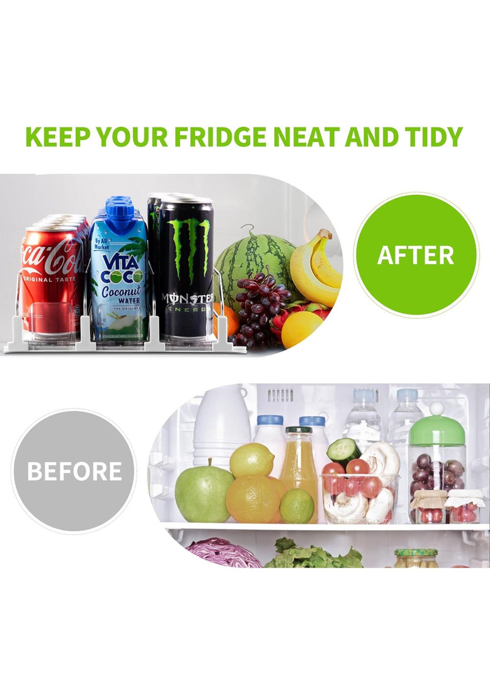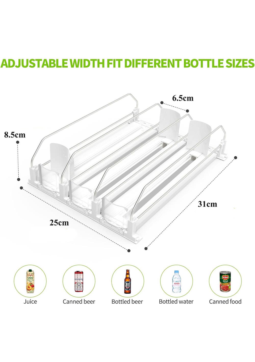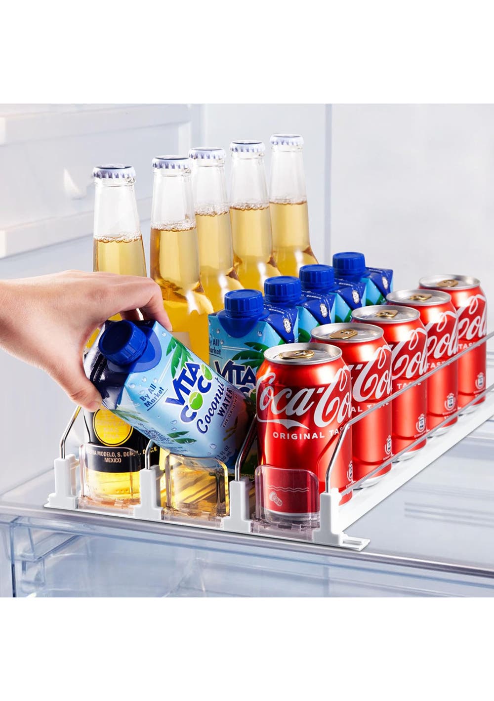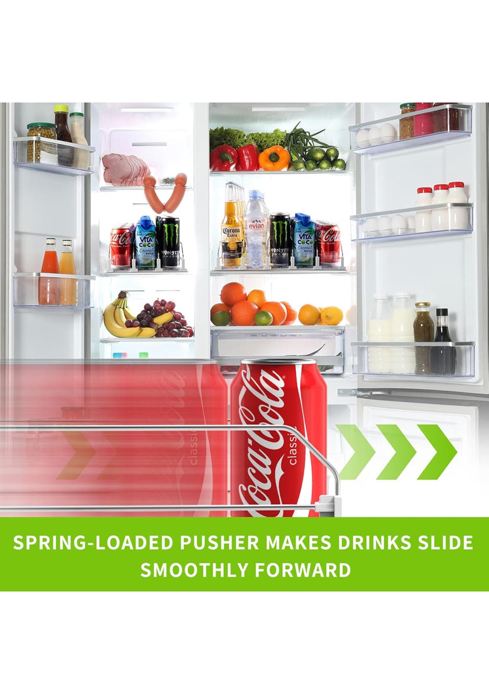 3 Row Soda Can Dispenser with Spring-Loaded Pusher Material: ABS Metal Package dimensions (LWH): 34X10X 11CM Weight: 830G Transform your refrigerator into a well-organized space with this adjustable drink organizer. Its innovative design, easy setup, and durable materials make it the perfect solution for keeping your beverages neatly stored and easily accessible. Key Features: Convenient Spring-Loaded Design: This soda can organizer for refrigerators features a built-in spring pusher system that automatically slides your drinks forward for easy access. The smooth, continuous movement ensures your beverages are always within reach and neatly organized. Spacious & Adjustable Storage: With three rows and a length of 31CM, this drink organizer can hold up to 12 cans or bottles of various sizes, including 12oz, 16oz, 16.9oz, and 20oz. The adjustable width accommodates different bottle sizes, providing flexibility for your storage needs. Easy Assembly & Maintenance: No tools or screws are required for setup—simply snap the pieces together, and your dispenser is ready to use. The smooth, waterproof surface makes it easy to clean, ensuring hassle-free maintenance and a tidy fridge. Durable Construction: Made from high-quality ABS and rust-resistant metal, this drink organizer is designed to last. The sturdy pusher system and adjustable rails ensure it remains stable and reliable over time, making it a great investment for your kitchen organization. Versatile Use: This organizer is perfect for fridge storage but also works well in cabinets or supermarket display shelves. Whether storing sodas, juices, beers, or canned foods, it helps you maintain a neat and orderly space. Package Includes: 1x Drink Organizer for Fridge (3 Row)
