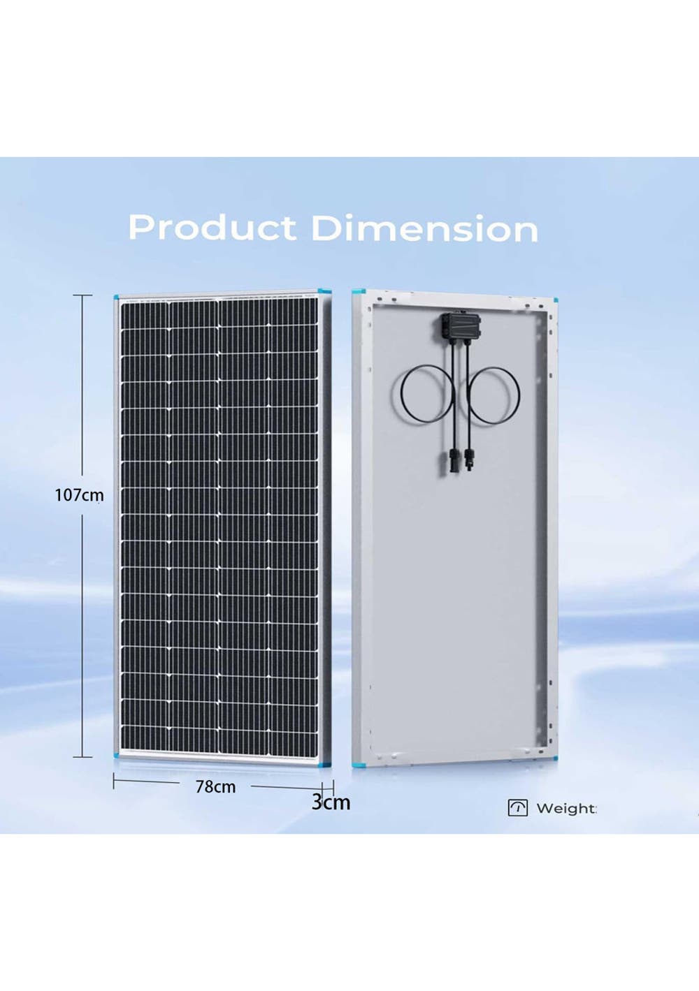Versatile Applications: Perfect for a variety of uses, this panel is compatible with both on-grid and off-grid inverters. Its pre-drilled holes make it easy to install on the ground, roof, or RV, and it’s compatible with multiple mounting systems like Z-Brackets, Pole Mounts, and Tilt Mounts.