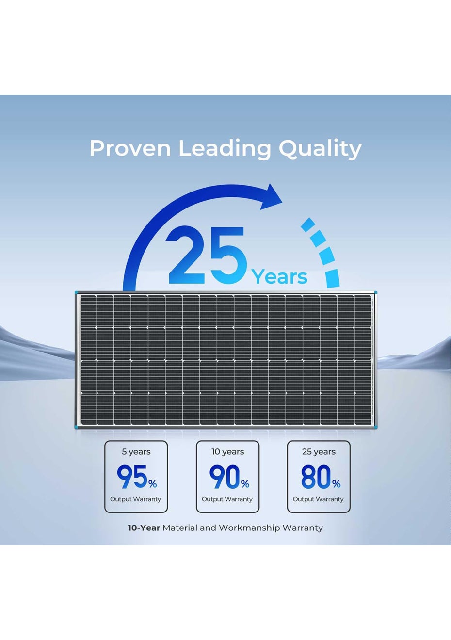 High Efficiency & Reliability: Constructed with A-grade monocrystalline silicon cells, this solar panel features advanced encapsulation materials with multi-layered laminations. EL-tested with no hot-spot heating, ensuring optimal performance and extended service life.