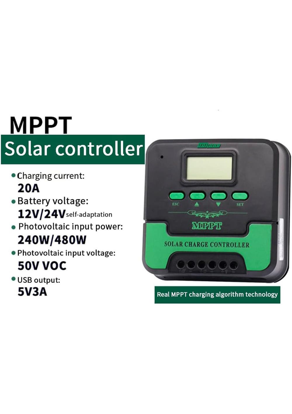 User-Friendly Features: The controller is designed with a USB output (5V/3A) for easy charging of small devices. It supports solar panel input up to 120W for 12V systems and 240W for 24V systems, with a maximum solar input voltage of 50V. The RS485 communication interface allows for easy monitoring and system adjustments.