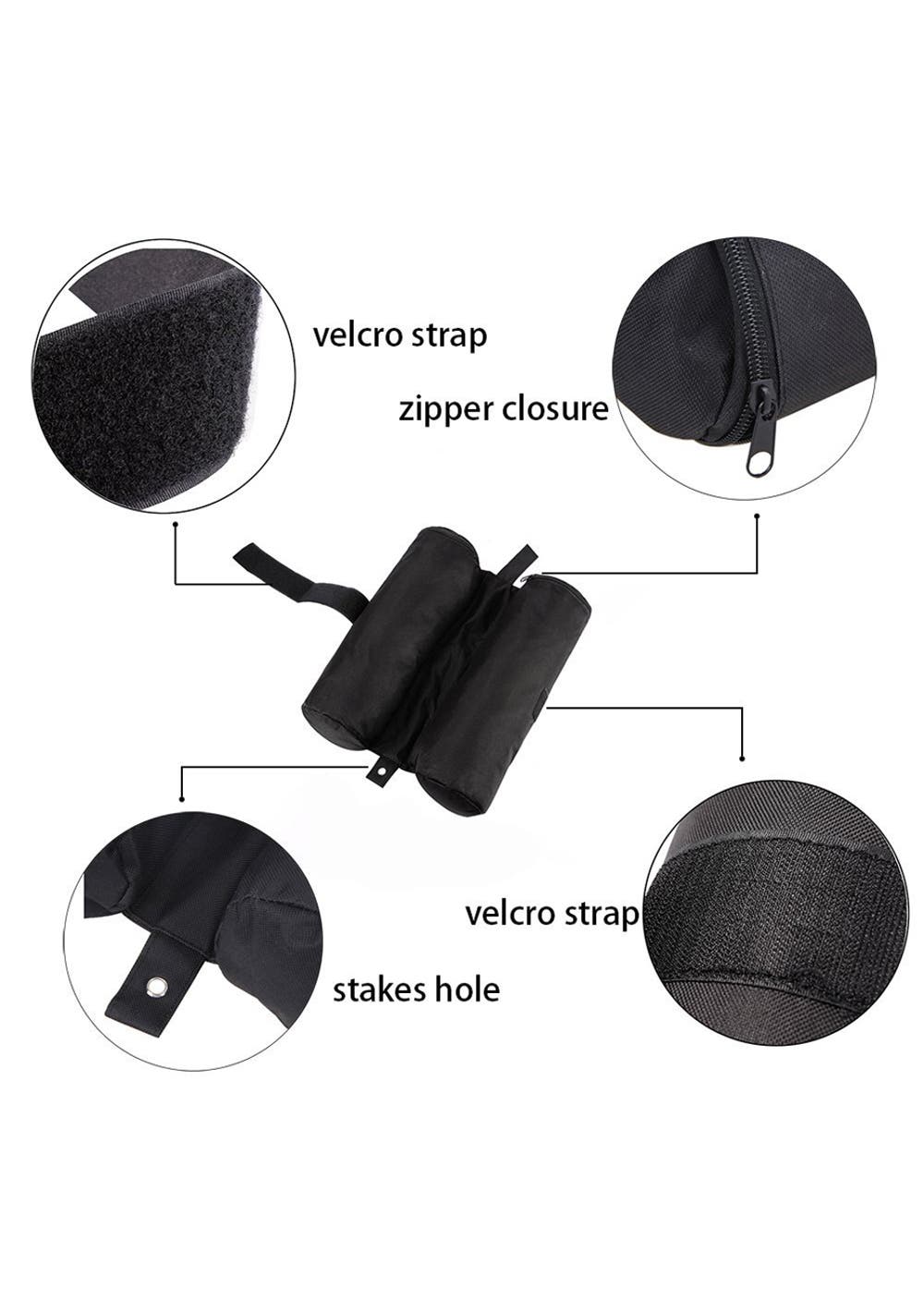 Each bag holds up to 15kg of sand, rocks, pea gravel or other easily accessible materials. Never worry about tents go sailing.
