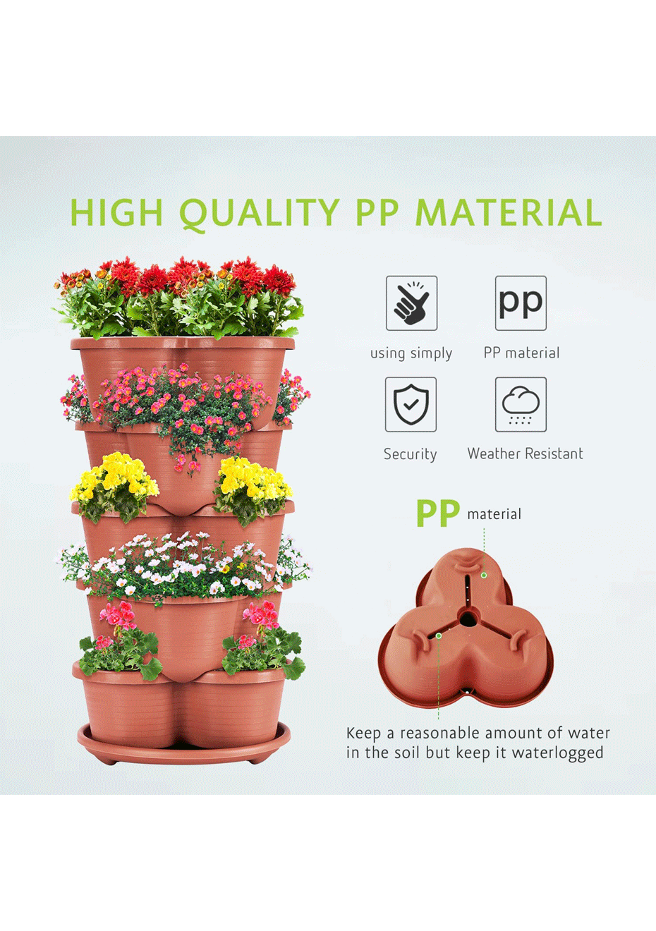 3 Tier Vertical Stackable Planter for Flowers Herbs Vegetables-Terracotta