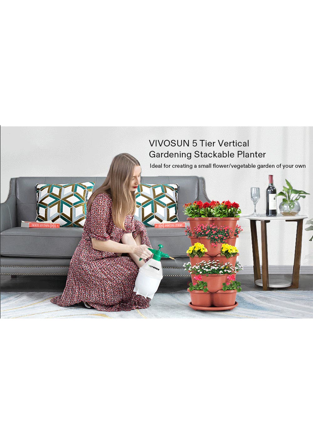 5 Tier Vertical Stackable Planter for Flowers Herbs Vegetables-Terracotta