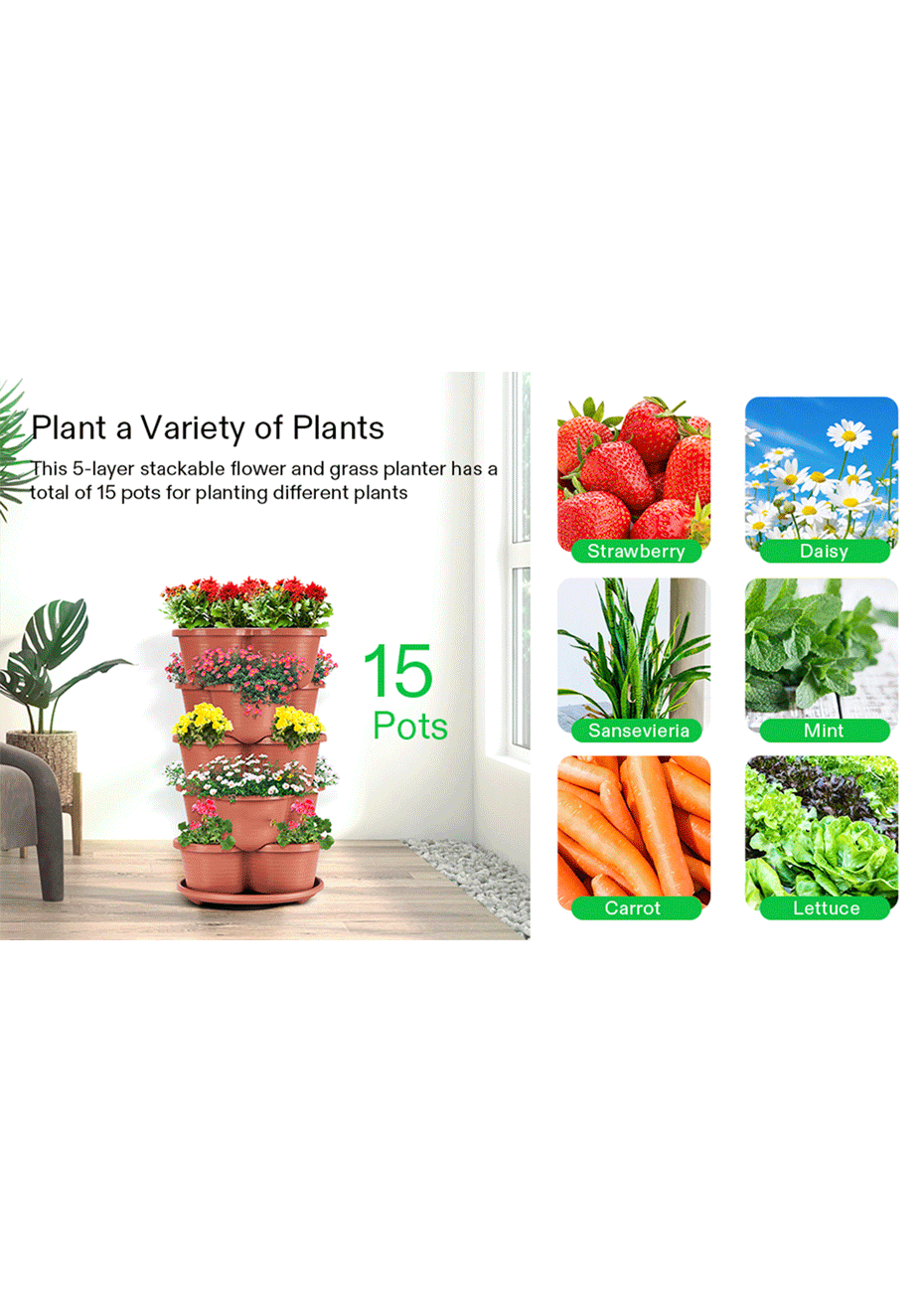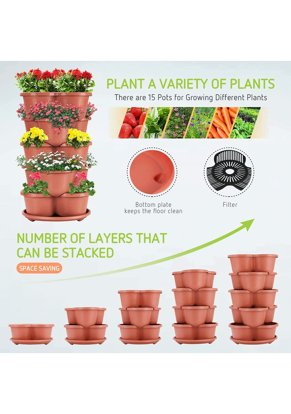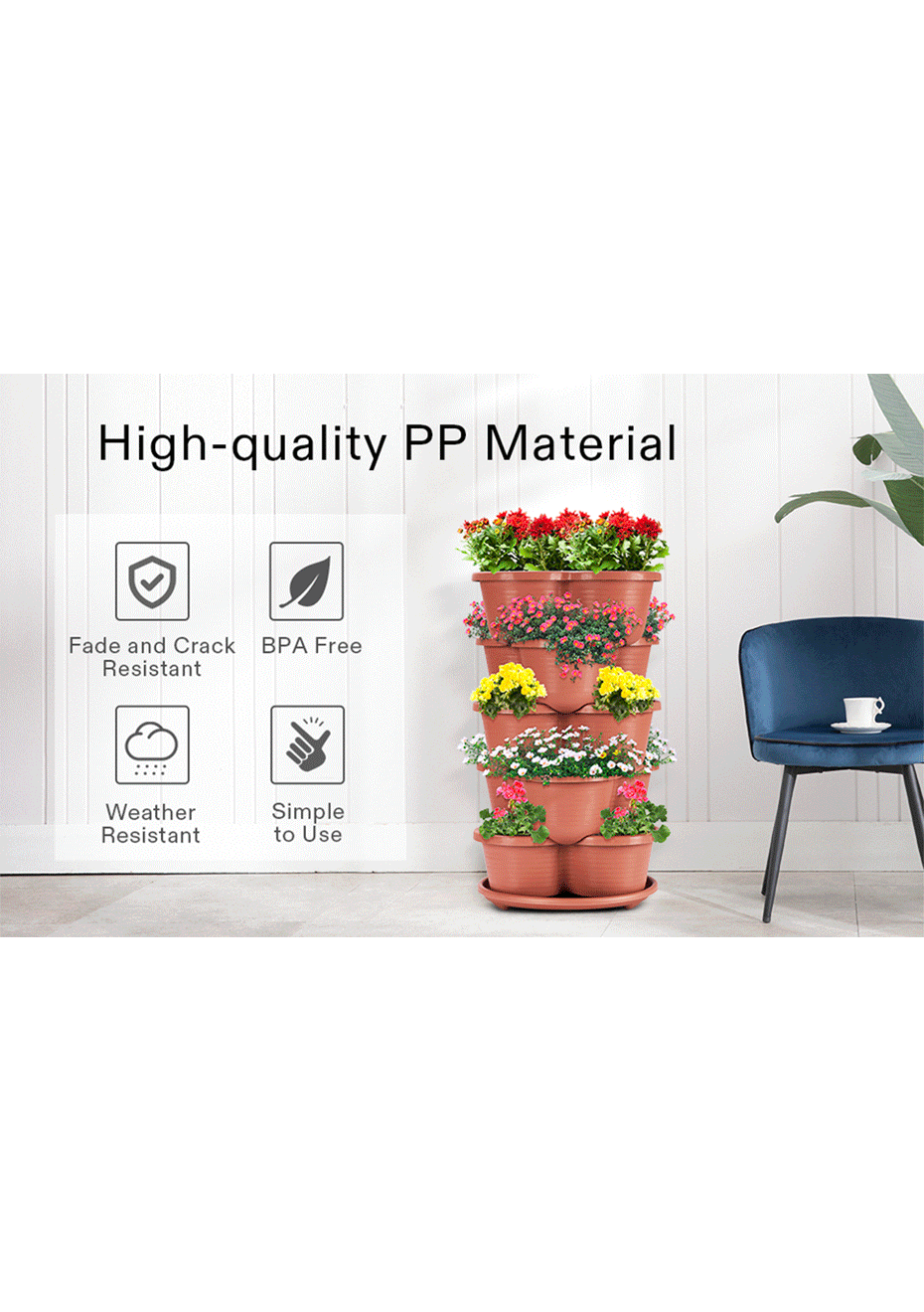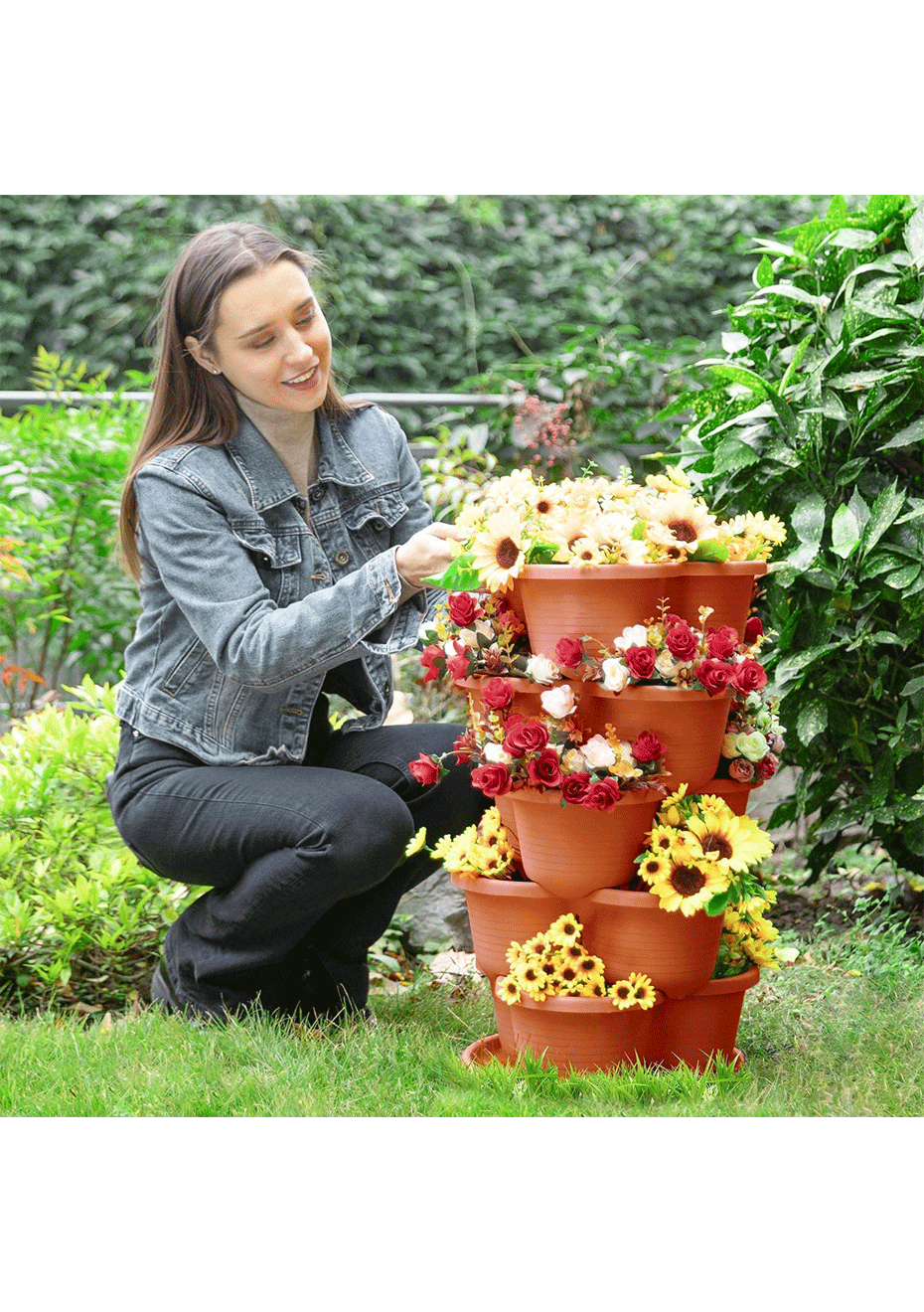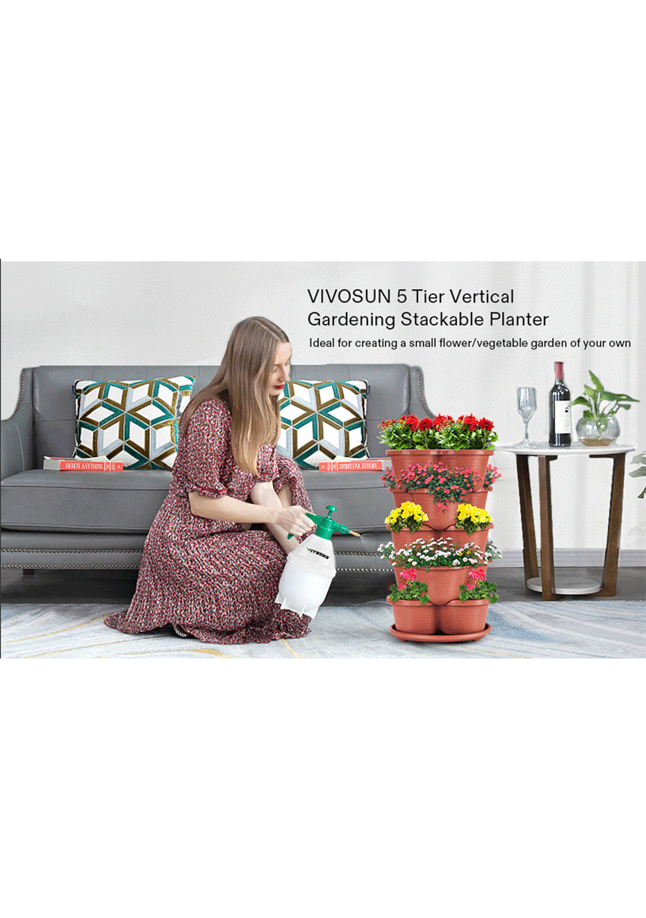 5 Tier Vertical Stackable Planter for Flowers Herbs Vegetables-Terracotta