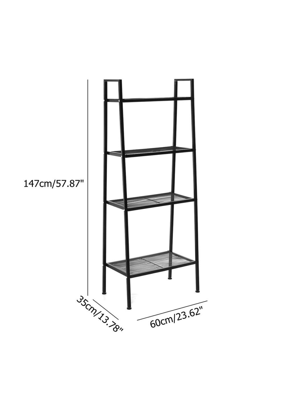 4 Tier Steel Mesh Ladder Shelf Display Rack 60×35×147cm-Black