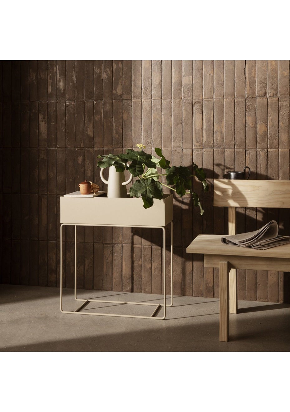 Indoor Metal Tall Rectangle Tray Plant Pot Stand-Beige