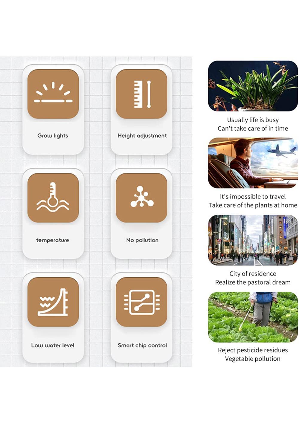 Low Water Level Reminder: With temperature display and low water level prompt, there is no need to open the planting trough to check if there is water shortage.