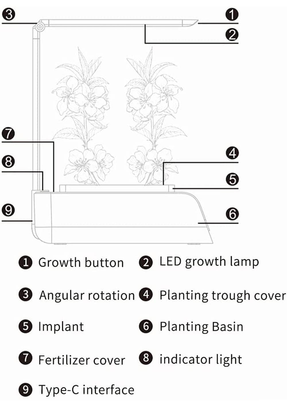With Grow Light: Intelligent chip control, automatic simulation of natural environment lighting, lighting plus enhanced lens, reducing plant growth cycle.