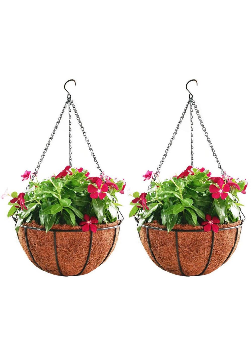 35cm Metal Hanging Planter Basket With Coco Liner - 2 Pack
