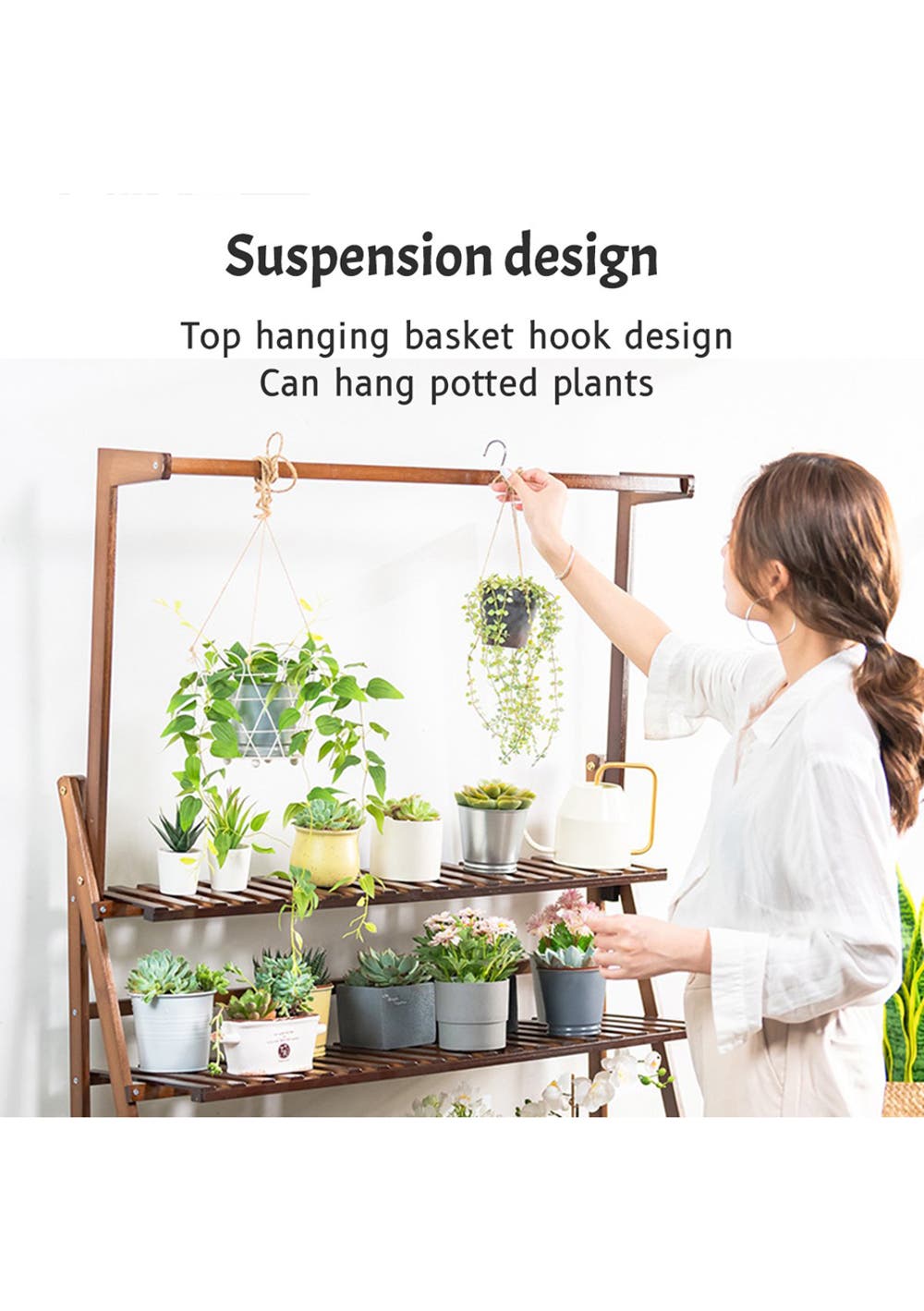 Attractive Hanging Design - Practical sturdy plant stand equipped with a elegant hanging rod will be a perfect design to show all of your lovely plants as you wish.